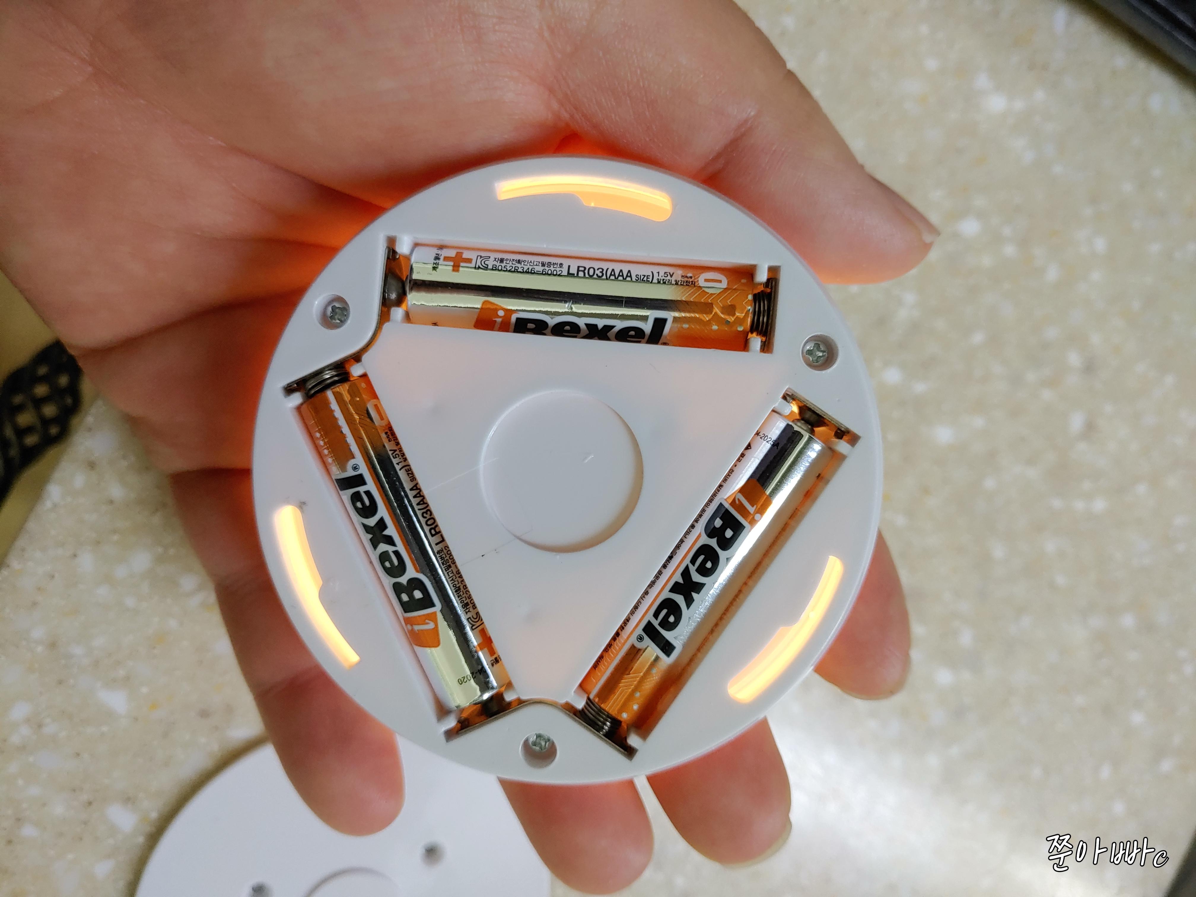 그냥 건전지 3개 넣으면 불이 들어오고, 센서등으로 움직이는 물체가 있으면 불이 들어옵니다.