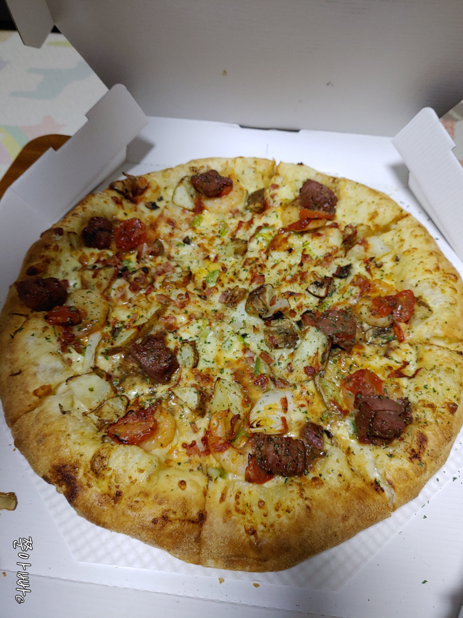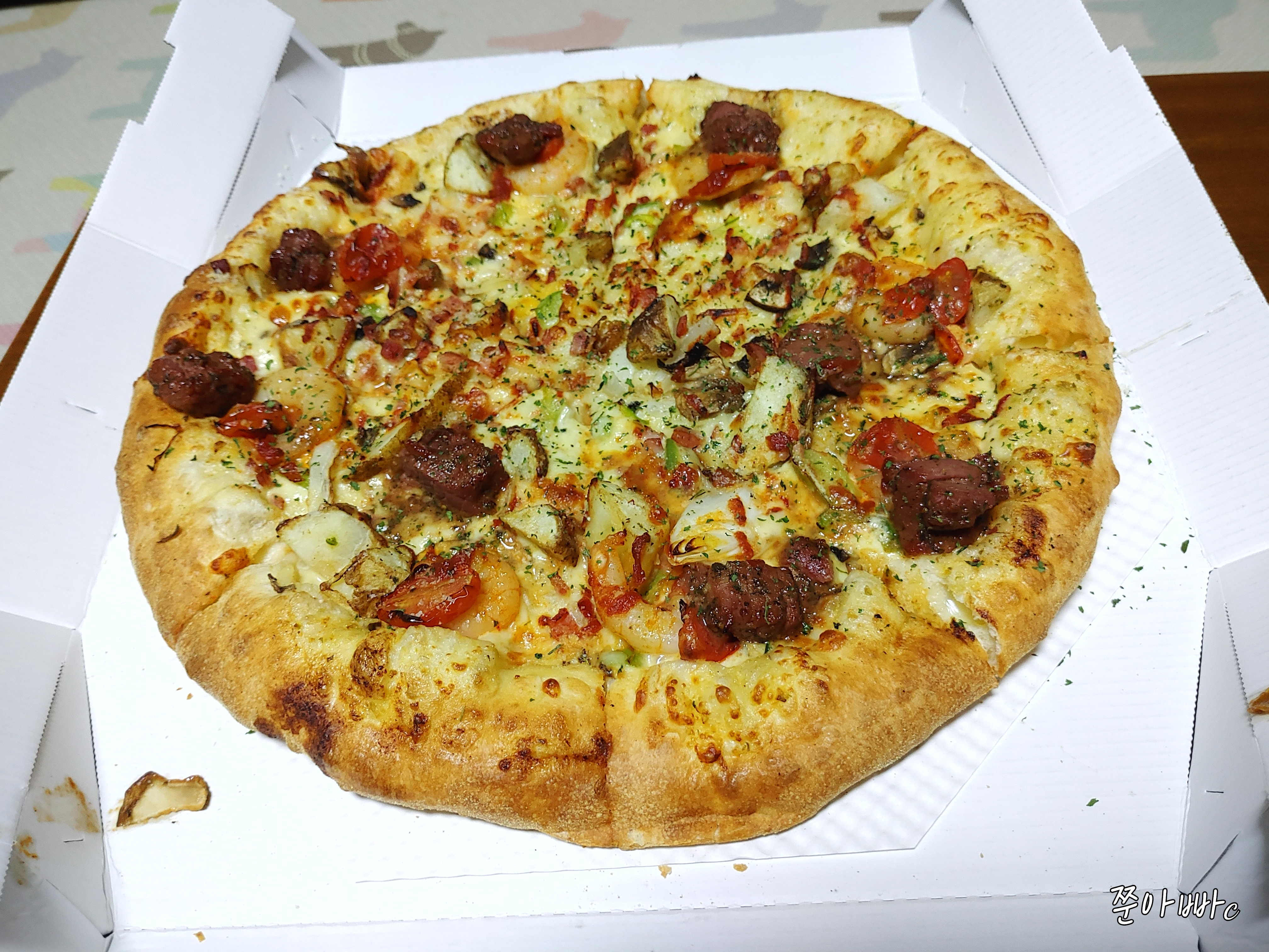 전체적으로 피자헛에 스테이크가 올라간 티본 피자가 낫긴한데.. 도미노피자의 스테이크 고기의 질은 진심 최고입니다. 피자에 이렇게 부드러운 고기가 올라갈줄이야.. 단지.. 양이 아쉬웠을뿐...