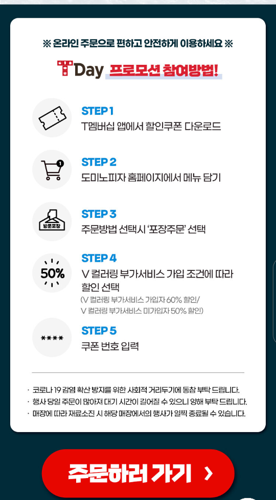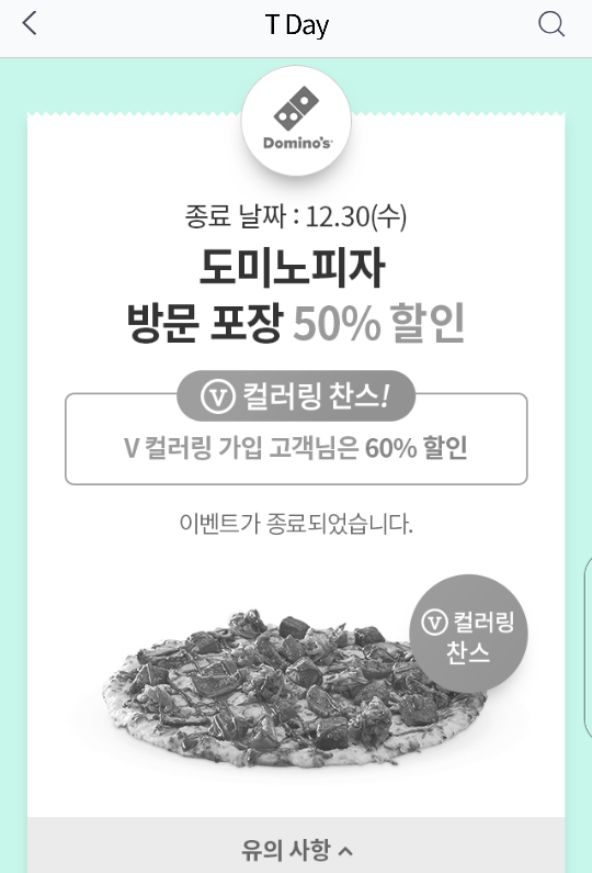 원래 티멤버쉽 도미노피자는 50% 할인쿠폰을 주는건데..