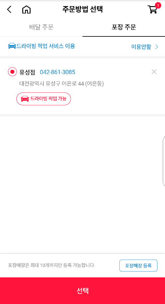 5. 피자 주문을 방문포장으로 선택하고 결제 페이지를 이동한다.