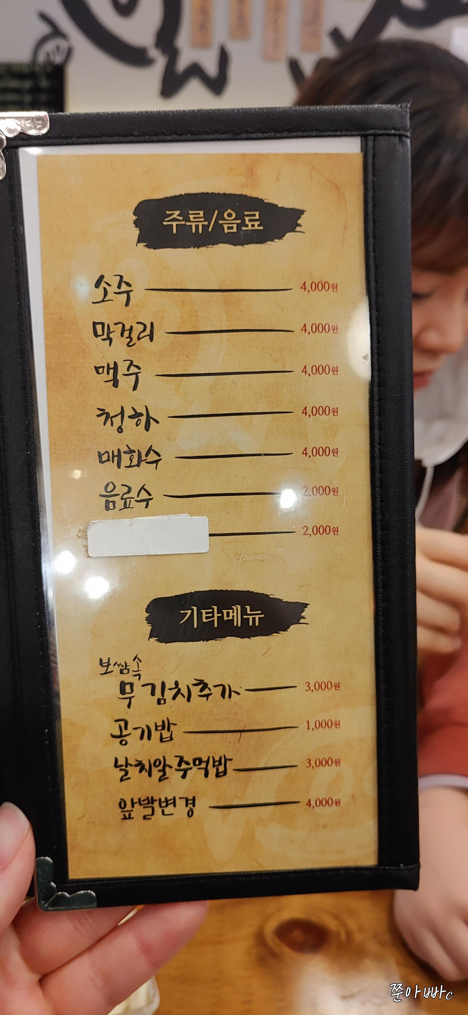 그럼 관저동 가족 족발의 메뉴를 봅시다!