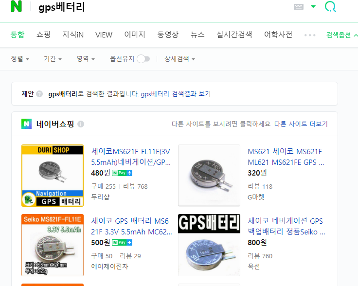 네이버에 gps베터리를 치면 쫙~ 하고 나온다.