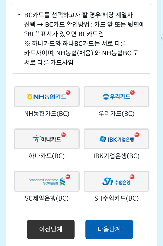 본인이 신청할 카드에 빨간색동그라미 BC마크가 있으면 비씨카드이니 아래에서 선택하길 바란다!