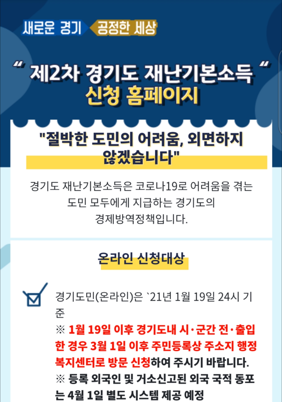경기도 재난지원금 신청은 아래 홈페이지에서 하시길 바랍니다.
