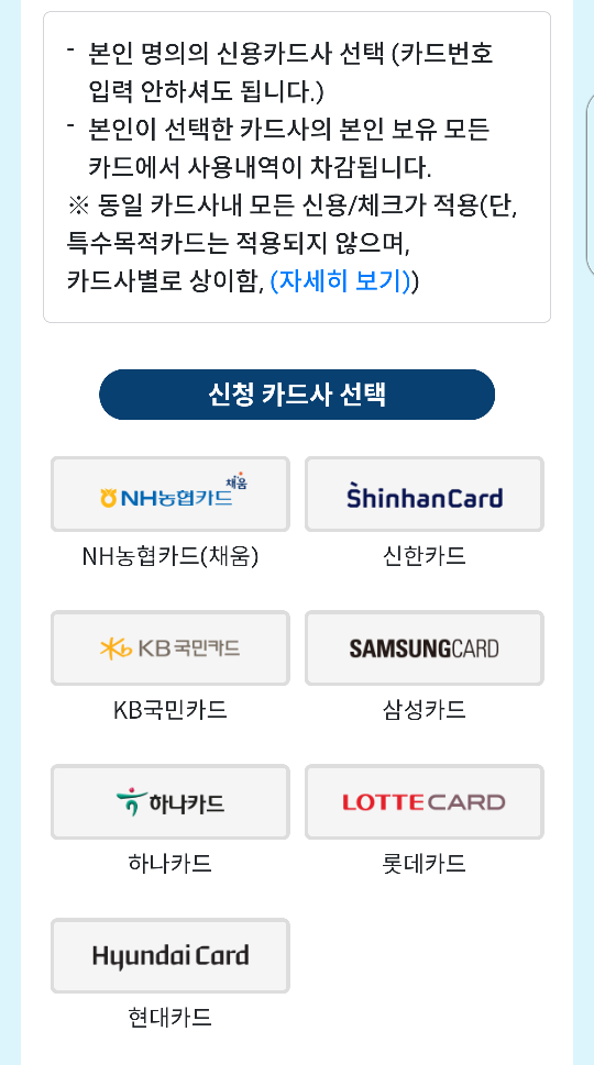 난 현대카드를 쓰고 있기 때문에... 신용카드중에서 현대카드로 선택하였다.