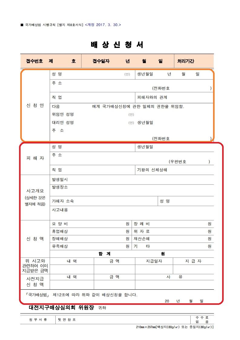 다운받은 배상신청서를 보면 쉽게 작성을 할수 있습니다.