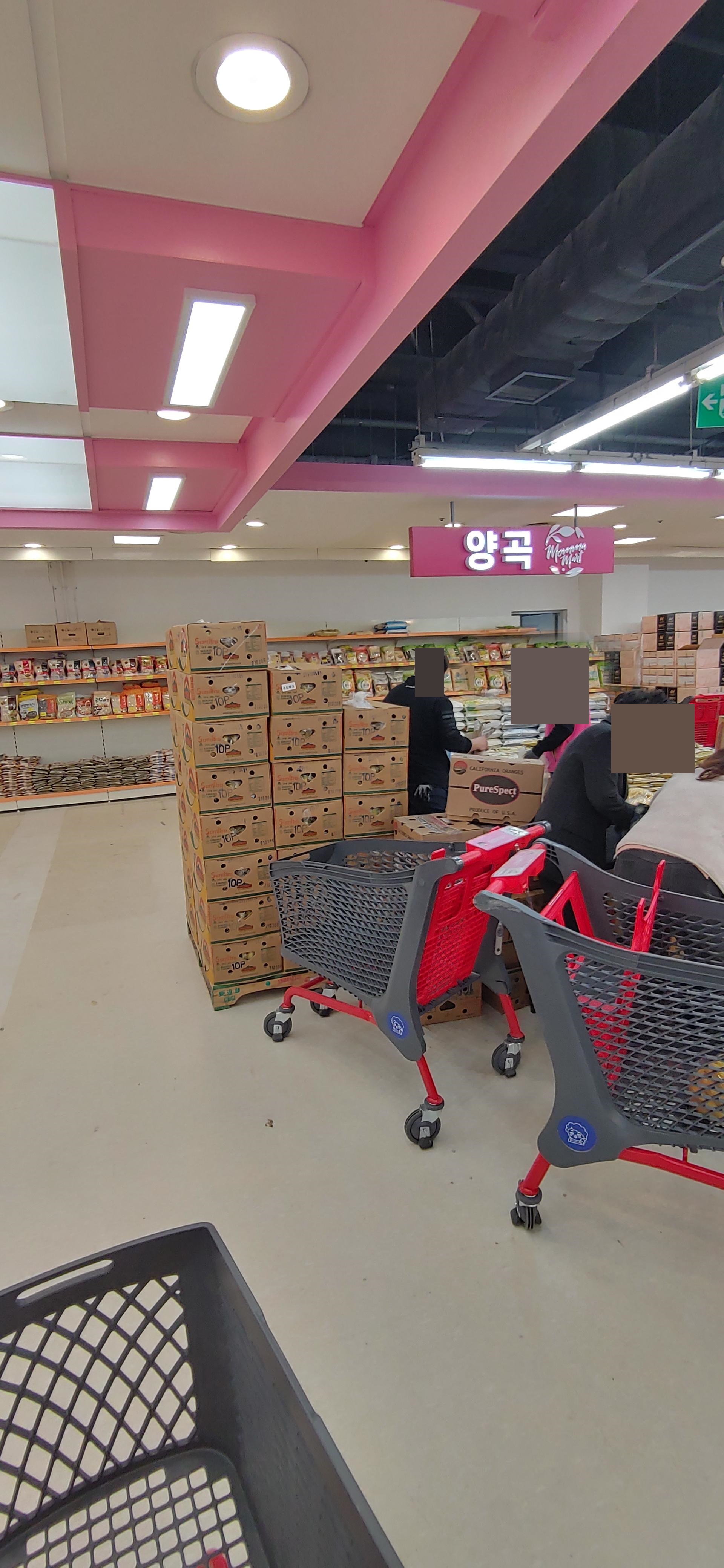 이제 맘마마트도착! 카트를 하나 잡고!