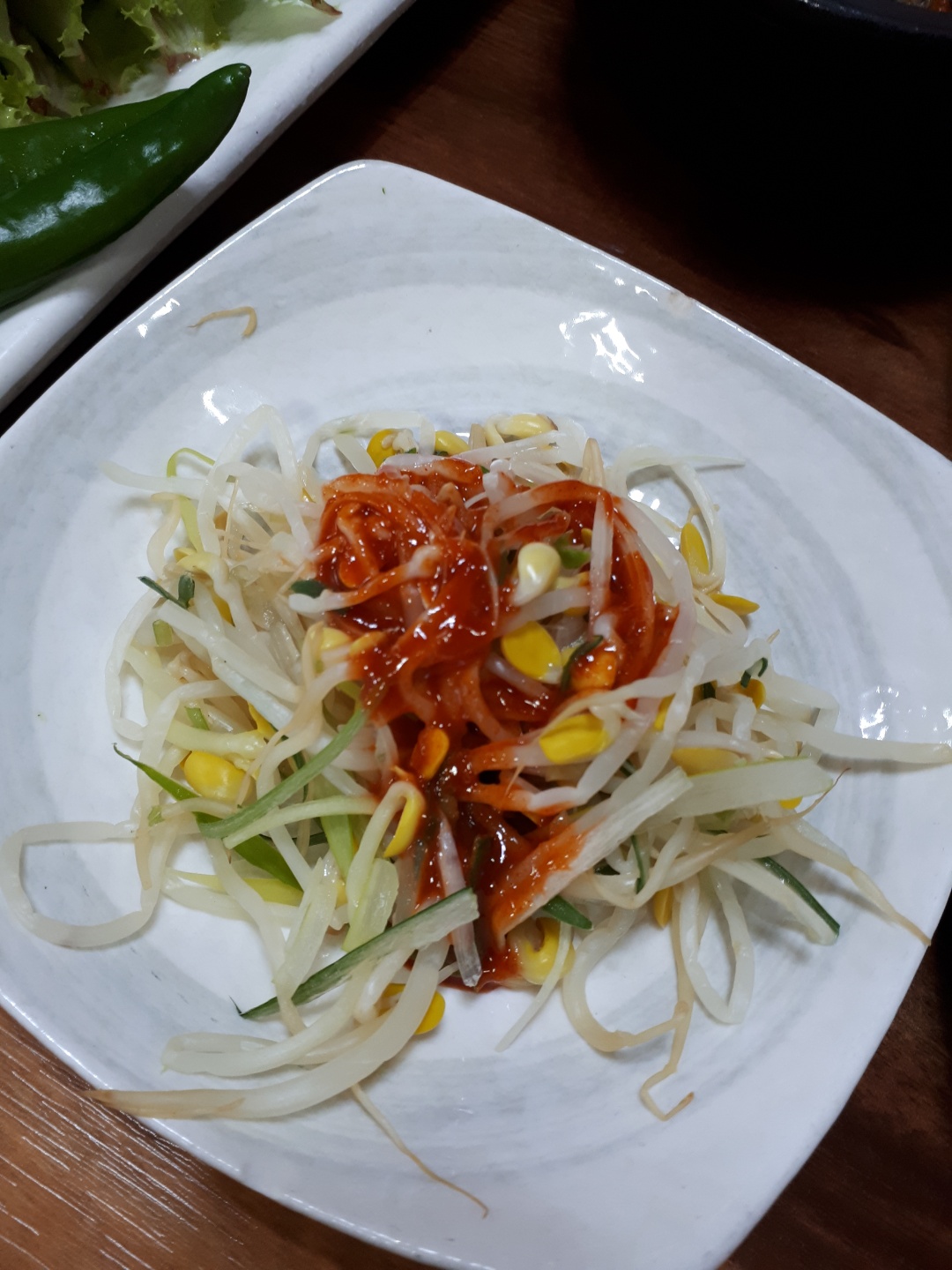 고추장 불고기를 먹으면서 또 고추장으로 무쳐진 콩나물 무침을 또 넣어 먹으니깐,