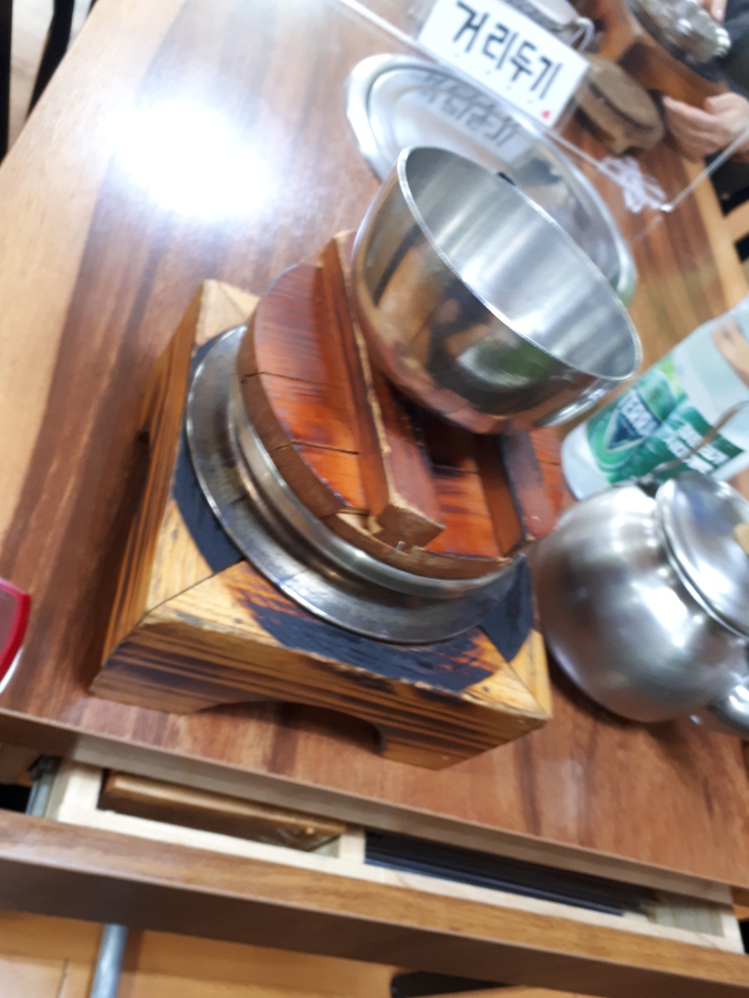 그렇지만 테이블 마다 거리두기 표지판을 세워놓아서
