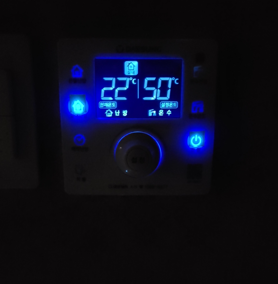 근데 온도조절기의 버튼 마다 파란색 LED램프가 달려서 엄청 눈부십니다.