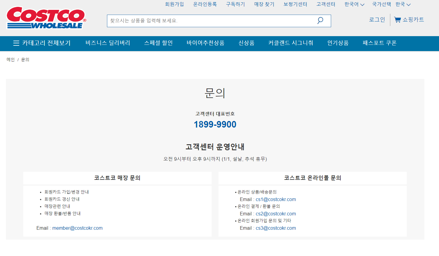 코스트코 고객센터 연락처는