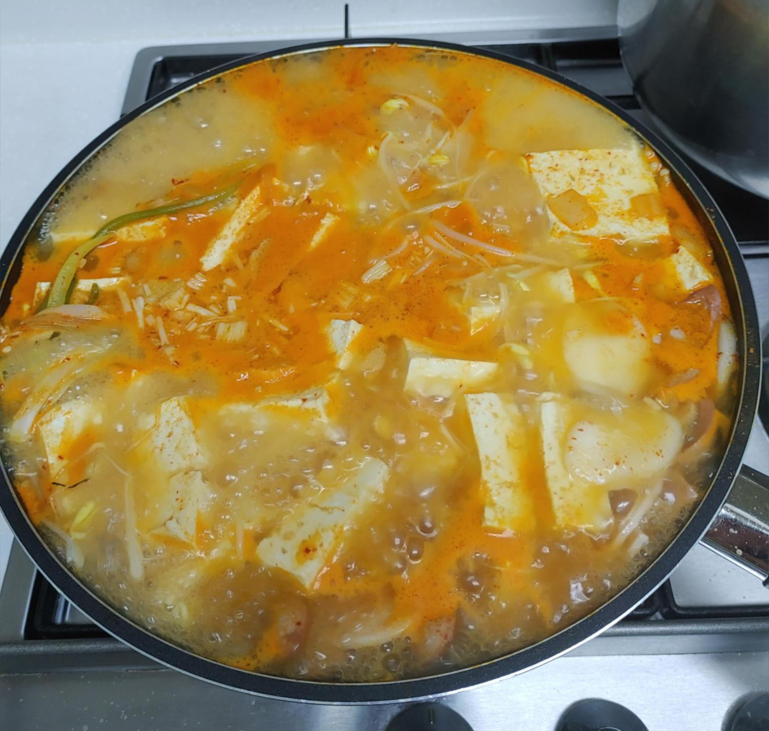 전 집에 두부랑 콩나물이 조금 있어서 같이 넣어서 끓였더니 엄청 시원했습니다. ㅎㅎ
