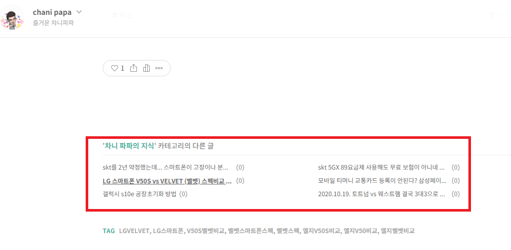 아래 사진처럼 카테고리의 다른글을 아래 사진처럼 나오게 됩니다.