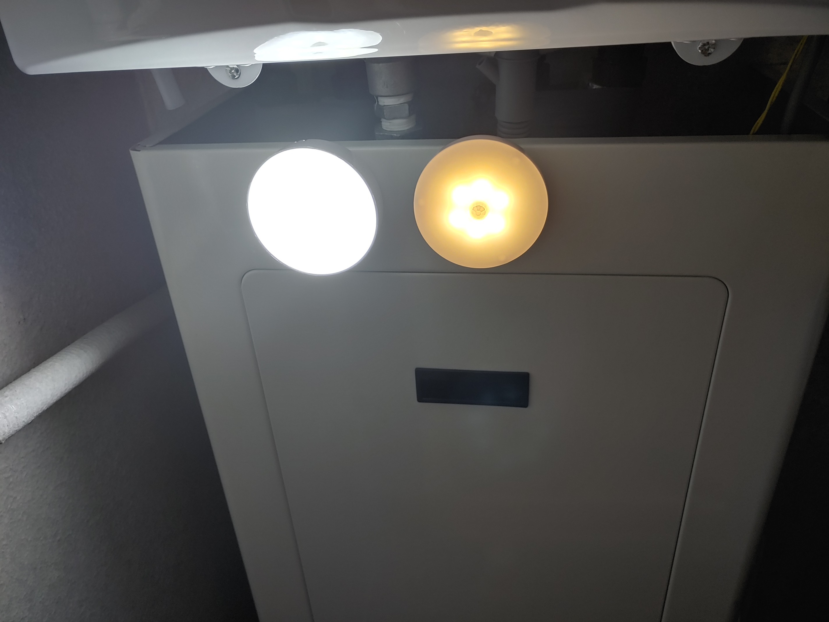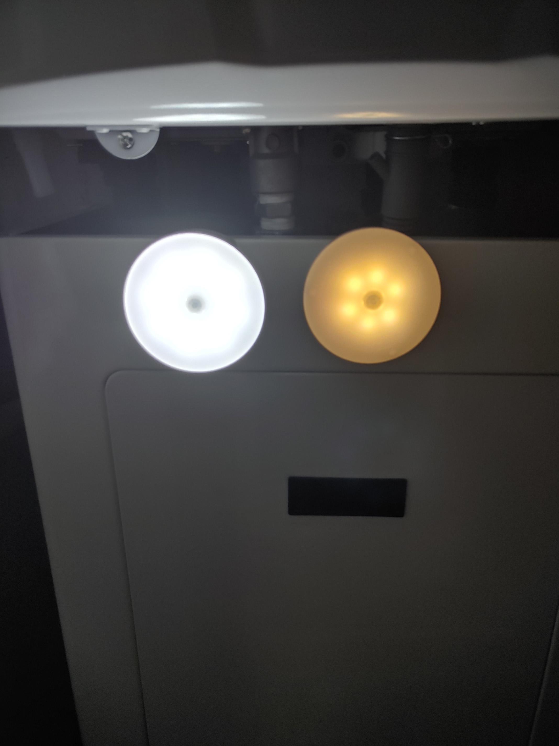 왼쪽이 이번에 새로운 무선 센서등(무드등) 충전식 쿨 화이트 색상이며,