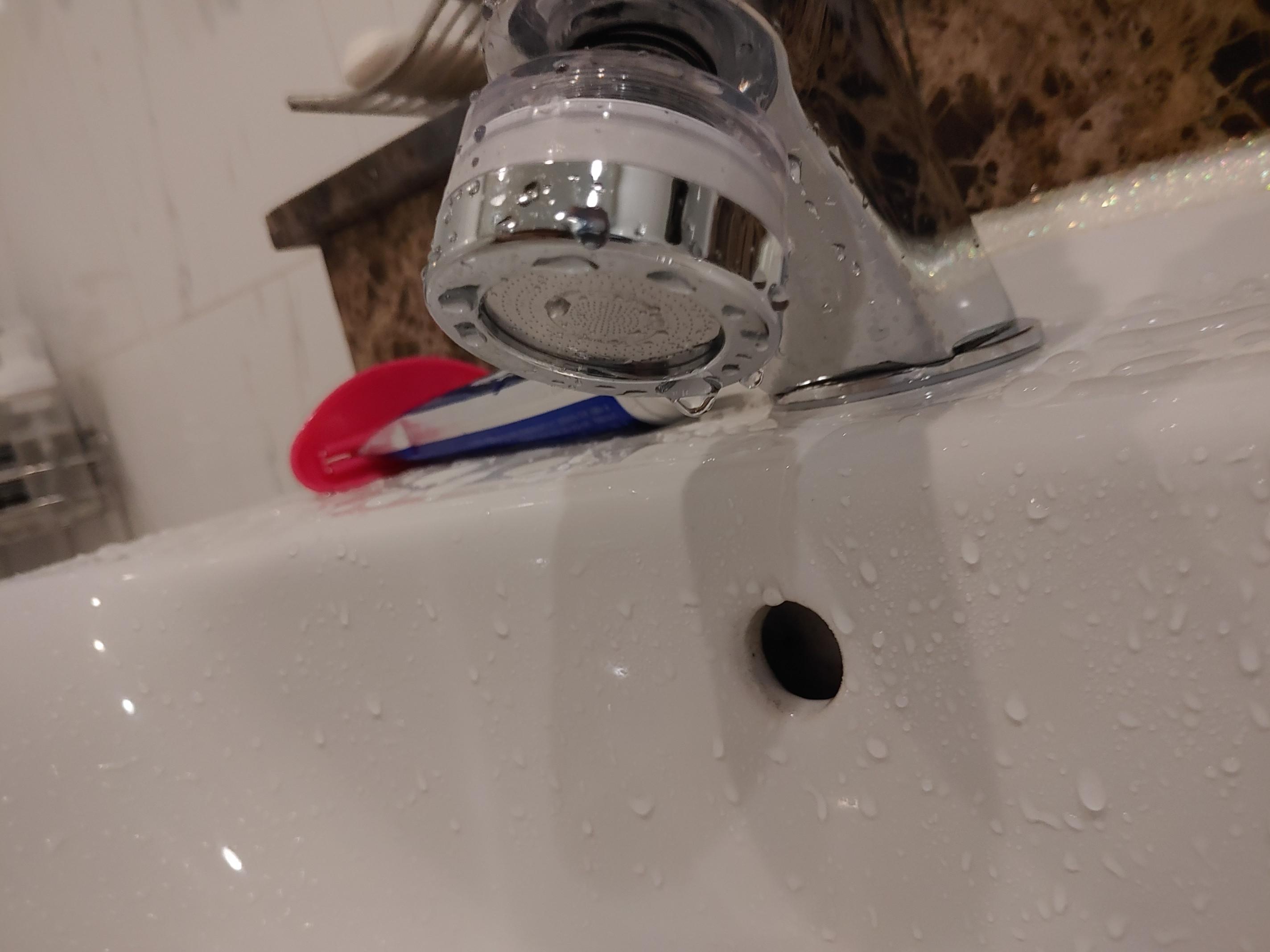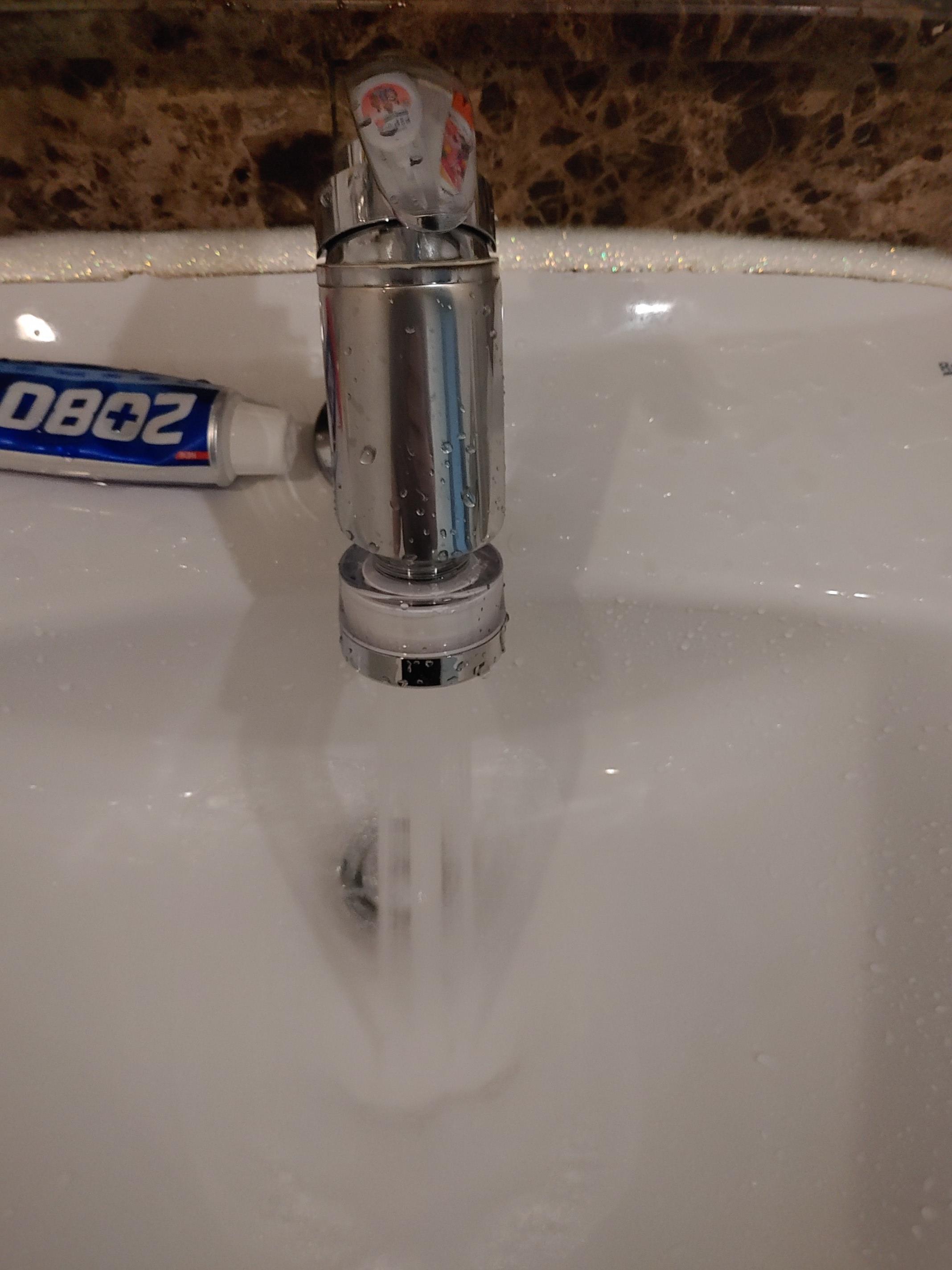 세면대 물살이 일정하고, 여기저기로 튀는 방식이 아니라, 가운데로 몰리게끔 디자인되어 있어서 좋다.