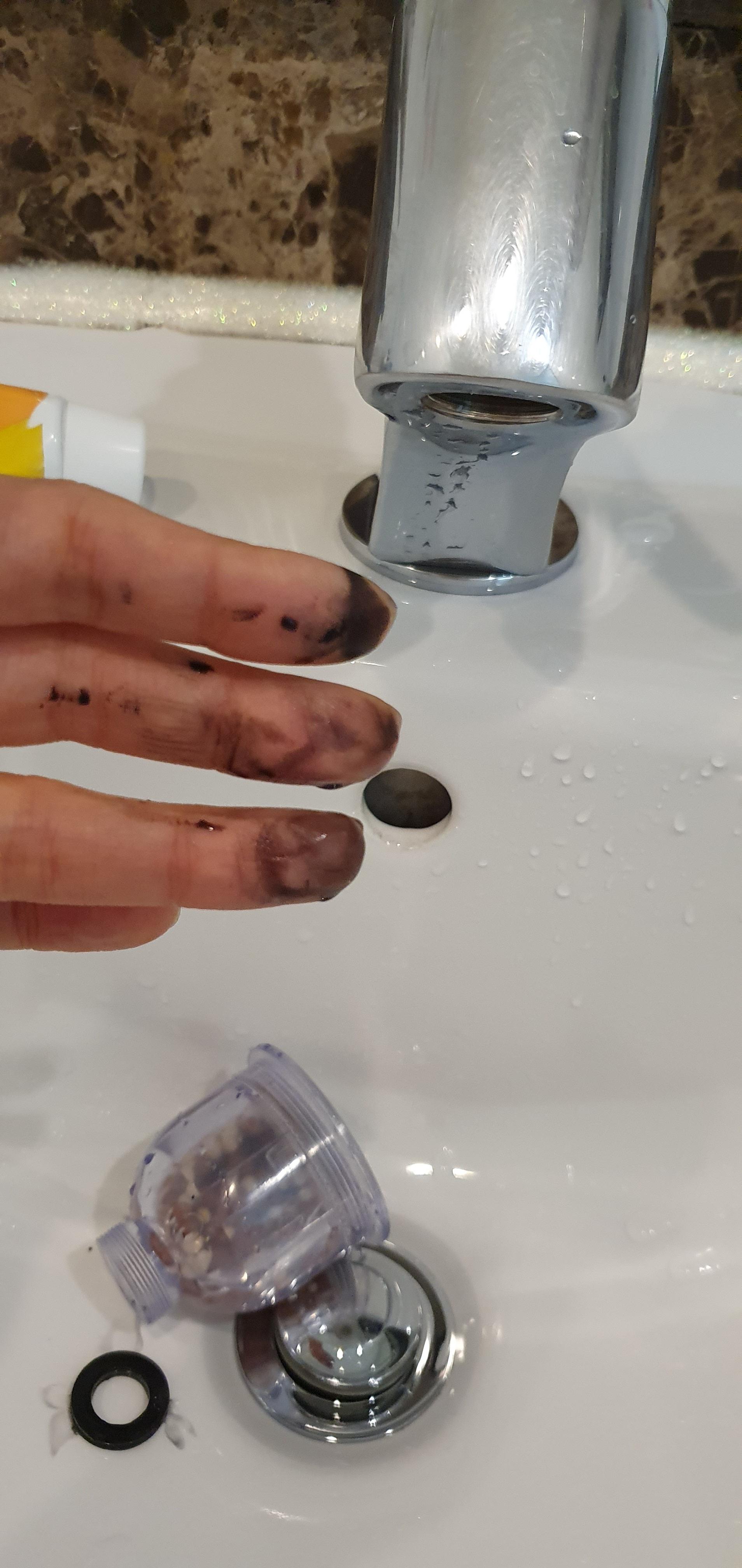 기존 사용하던 세면대 필터를 빼보니, 검은색 국물이 보인다..ㅜ.ㅜ;
