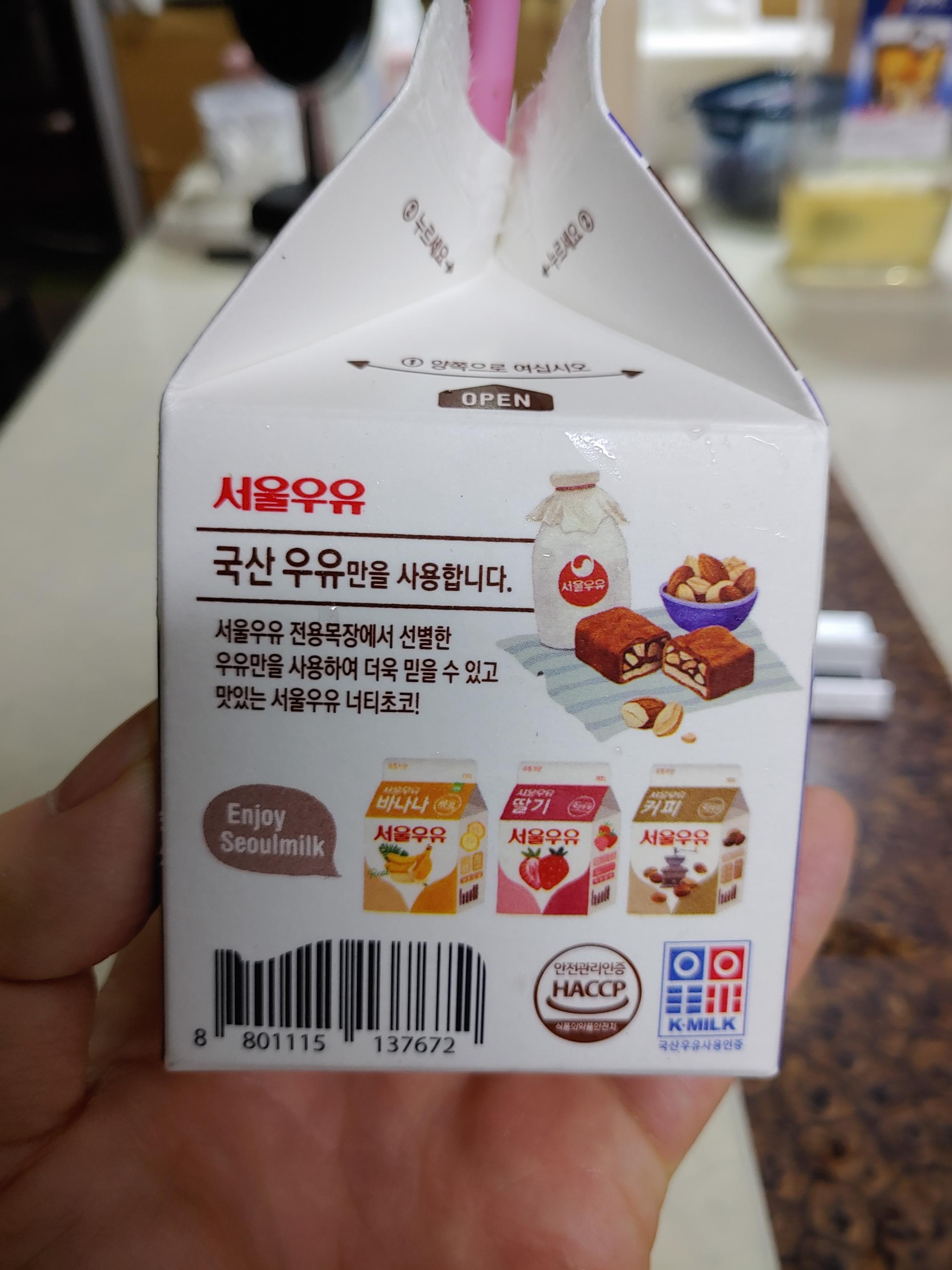 바로 서울우유 너티초코라는 가공우유입니다.
