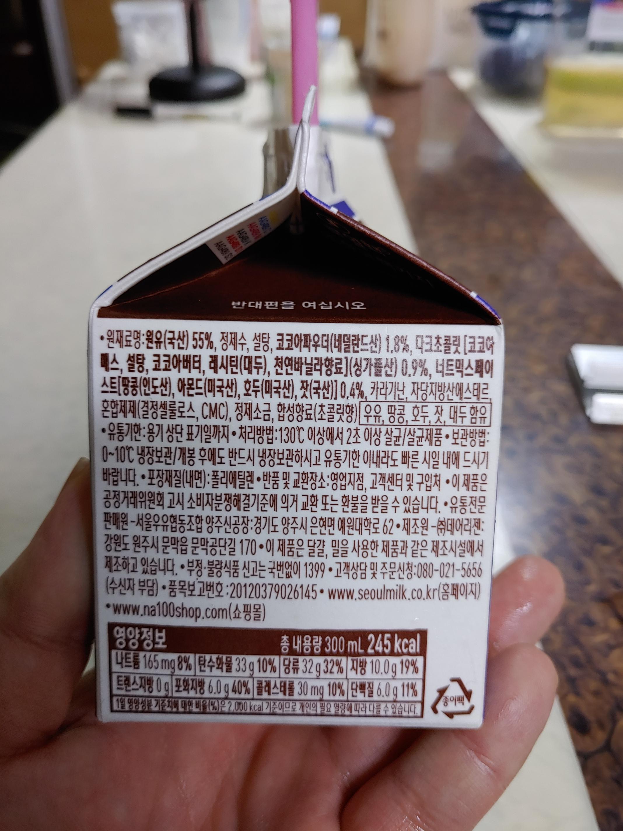 너티 우유는 55% 원유면 쬐금 아쉽네요.