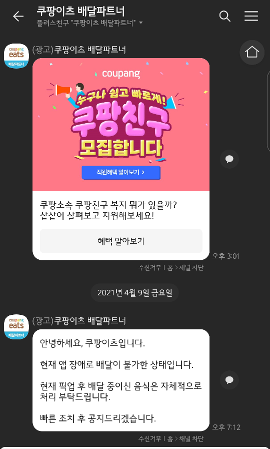 쿠팡이츠 서버가 오류난건가? ㅎㅎㅎ