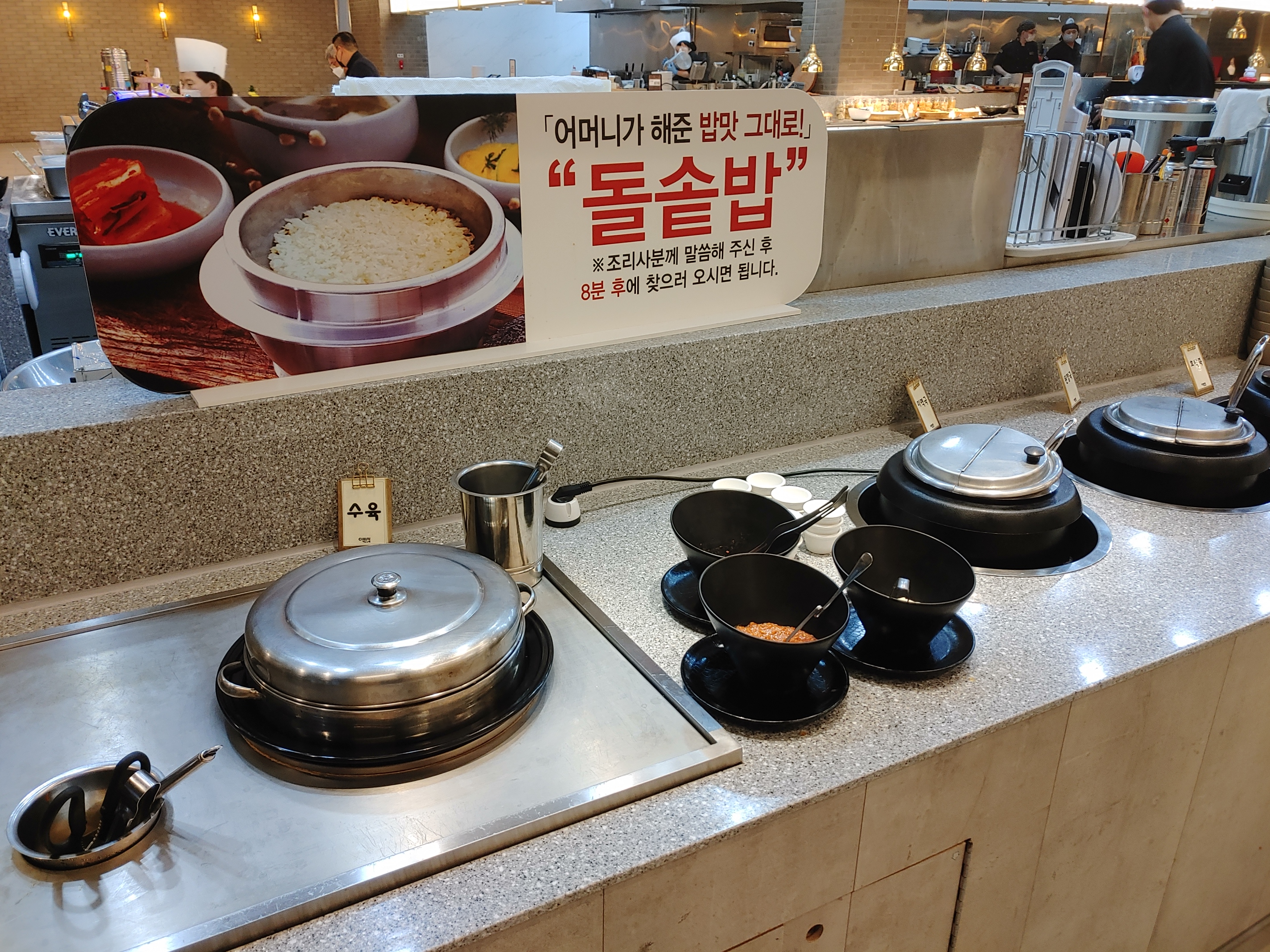 모든 테이블 위에 핫플레이트가 있습니다.