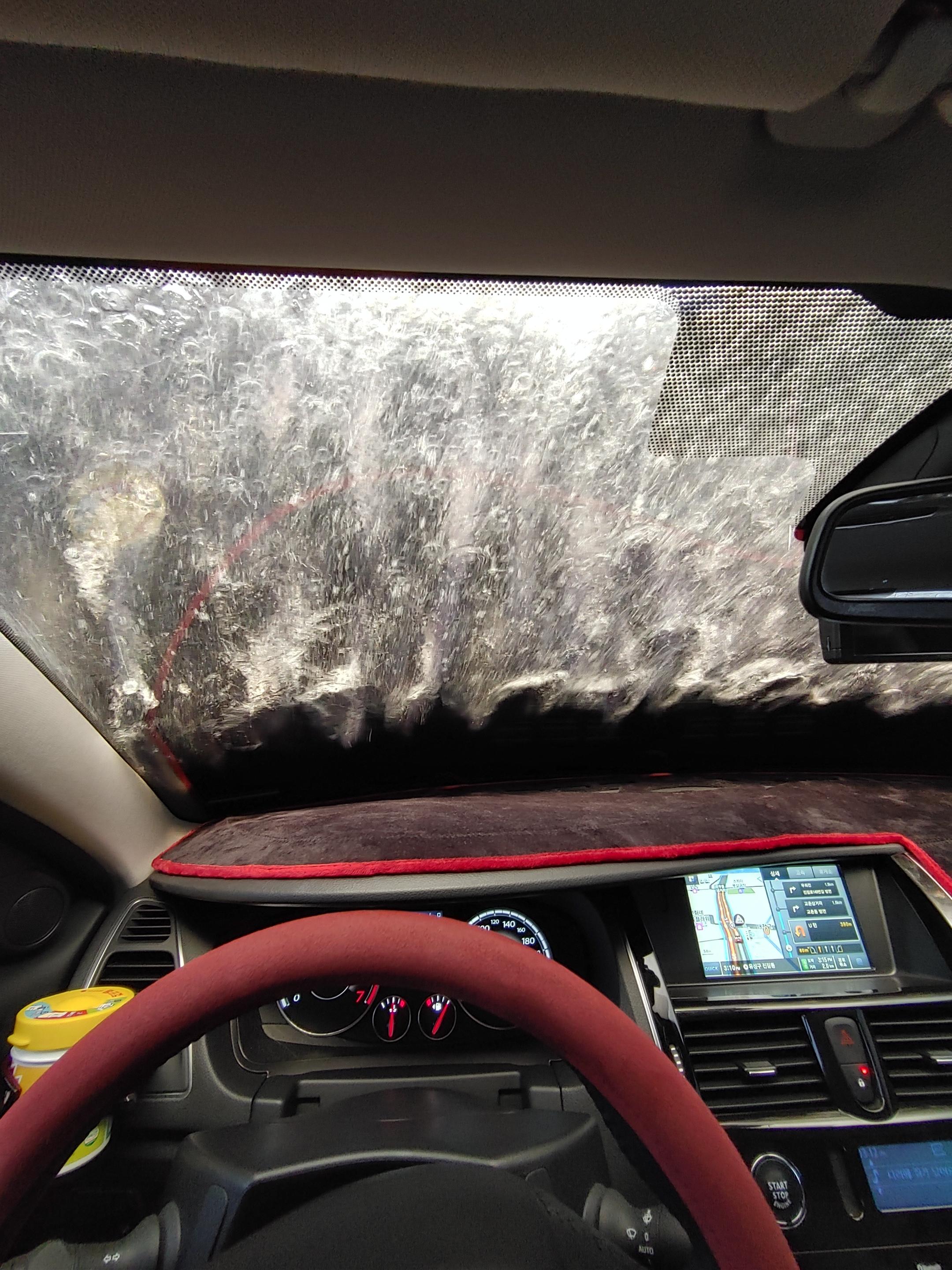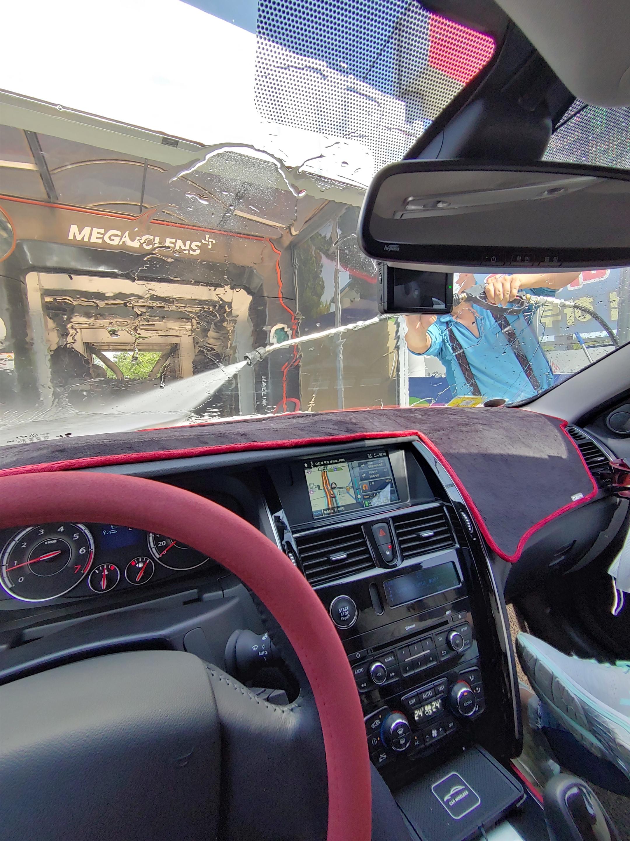 브레이크에서 발을 떼면 이제 세차기가 차를 닦아줍니다.