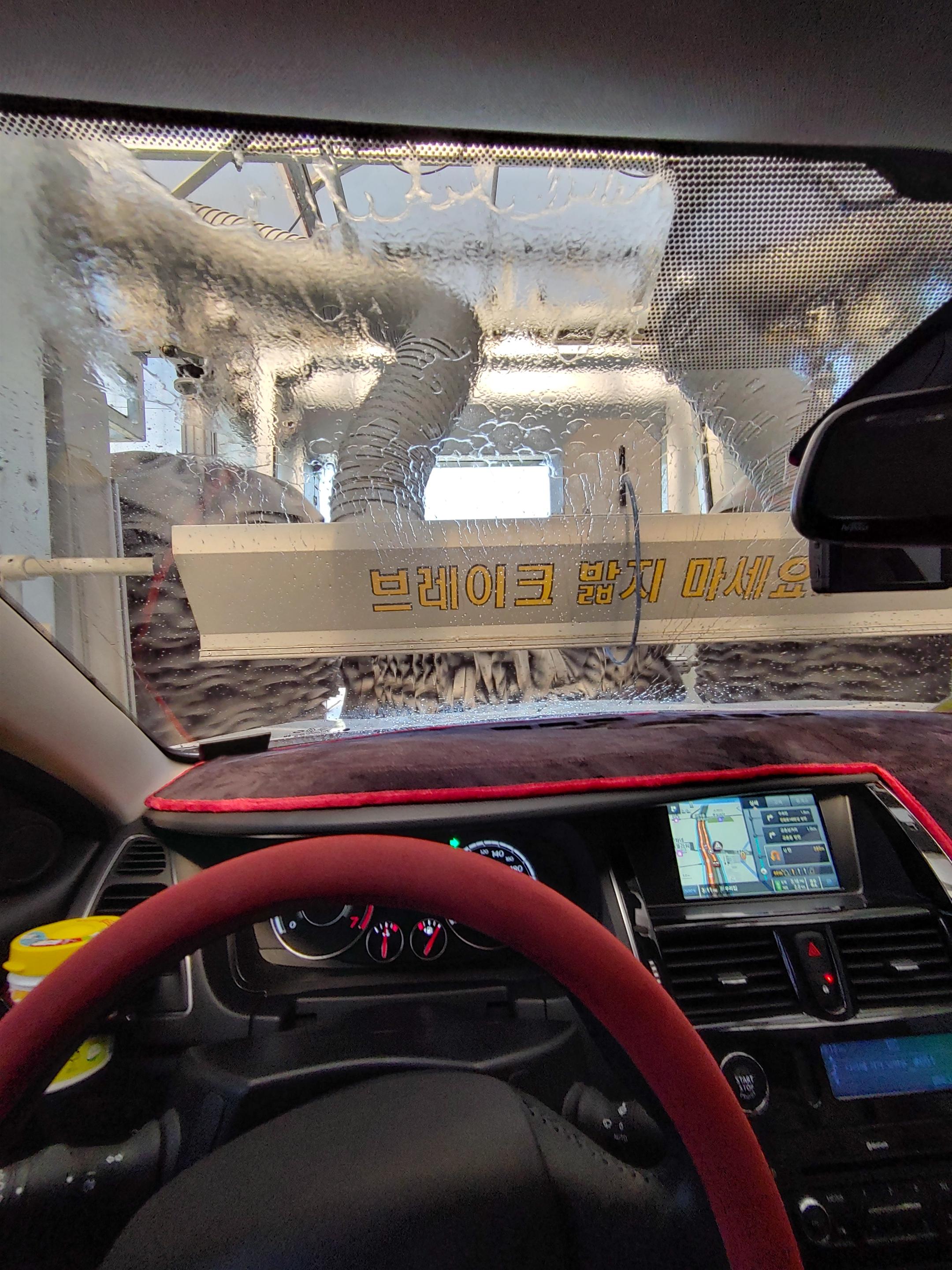 이제 애벌 세차가 끝나고 자동 세차기로 들어갑니다.