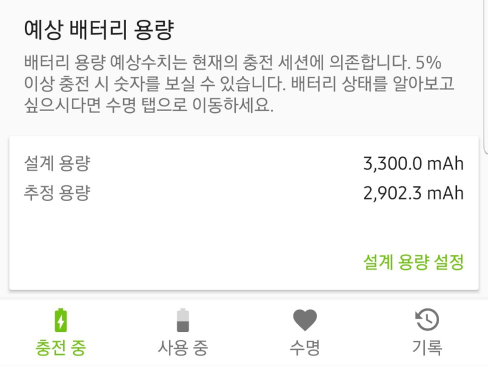 추정 용량은 실제 지금 노트8의 베터리 용량을 보여 주는 것입니다.