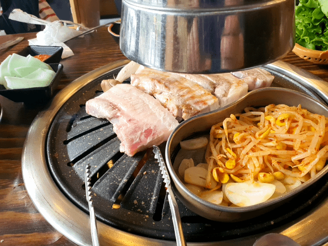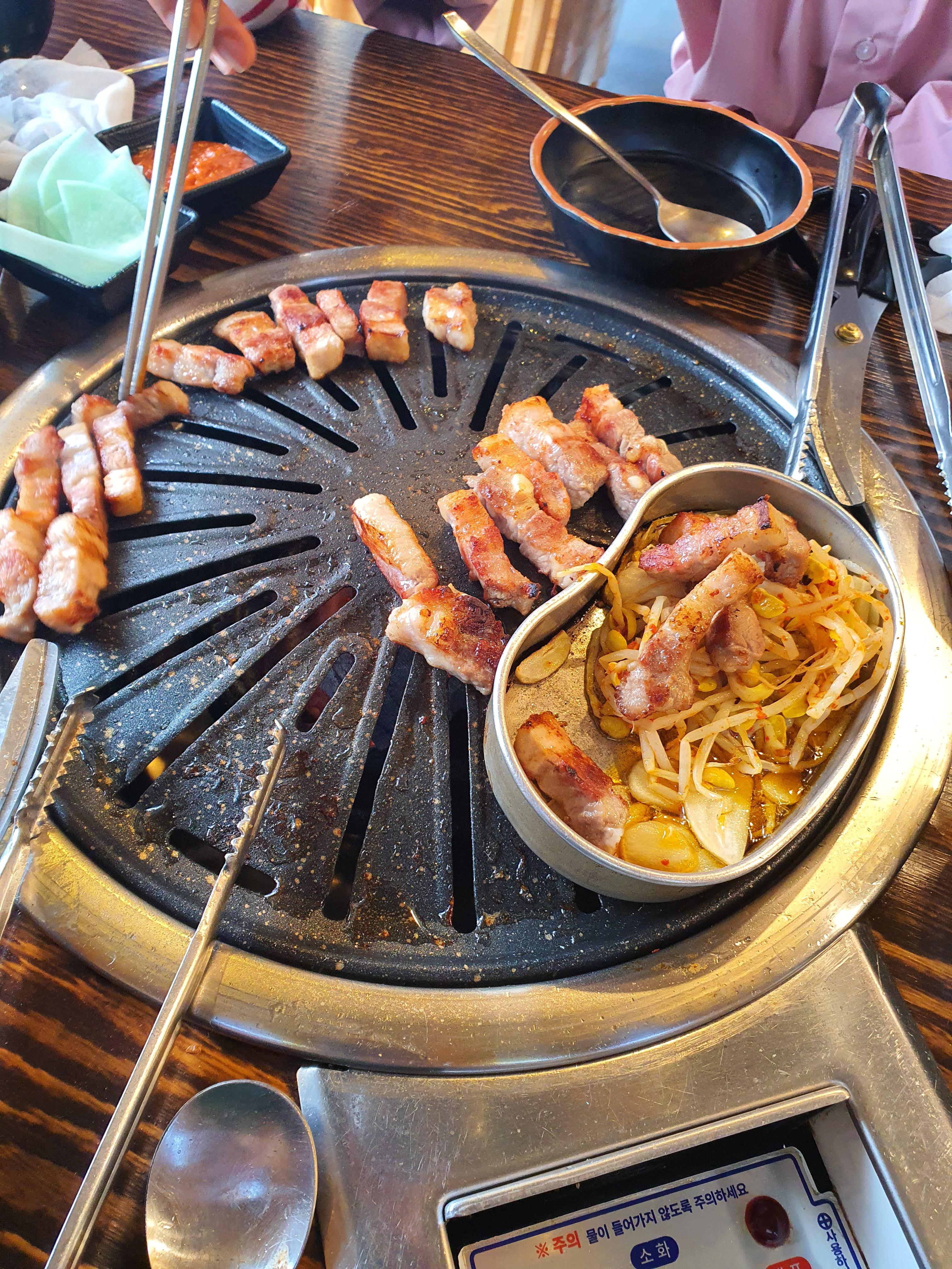 불판을 살짝 데울만 할때 고기를 올려야죠 ㅎㅎ
