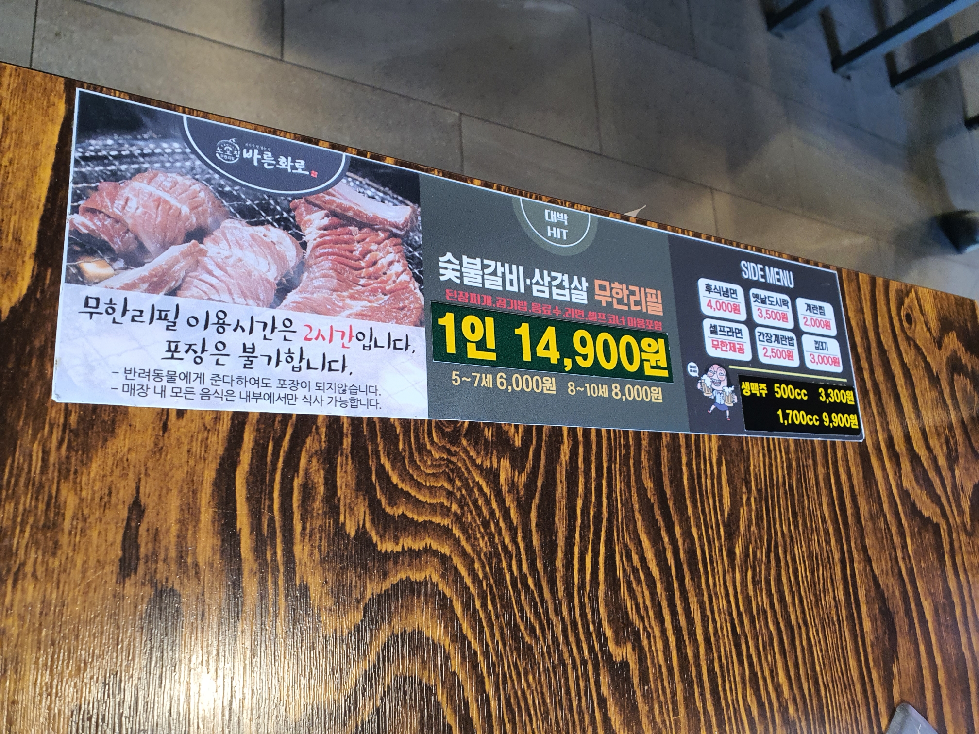 관저동 바른화로 고기집이 무한리필이라고 하더도