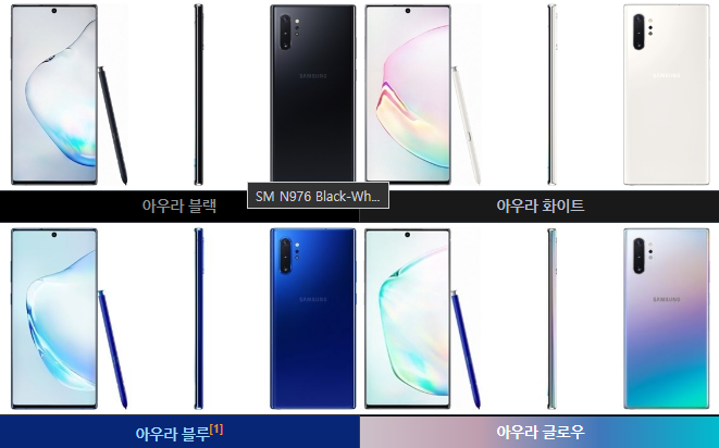 갤럭시 노트10+ 색상은 아래와 같이 있습니다.