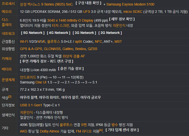 근데 S20과는 별차이가 없습니다.
