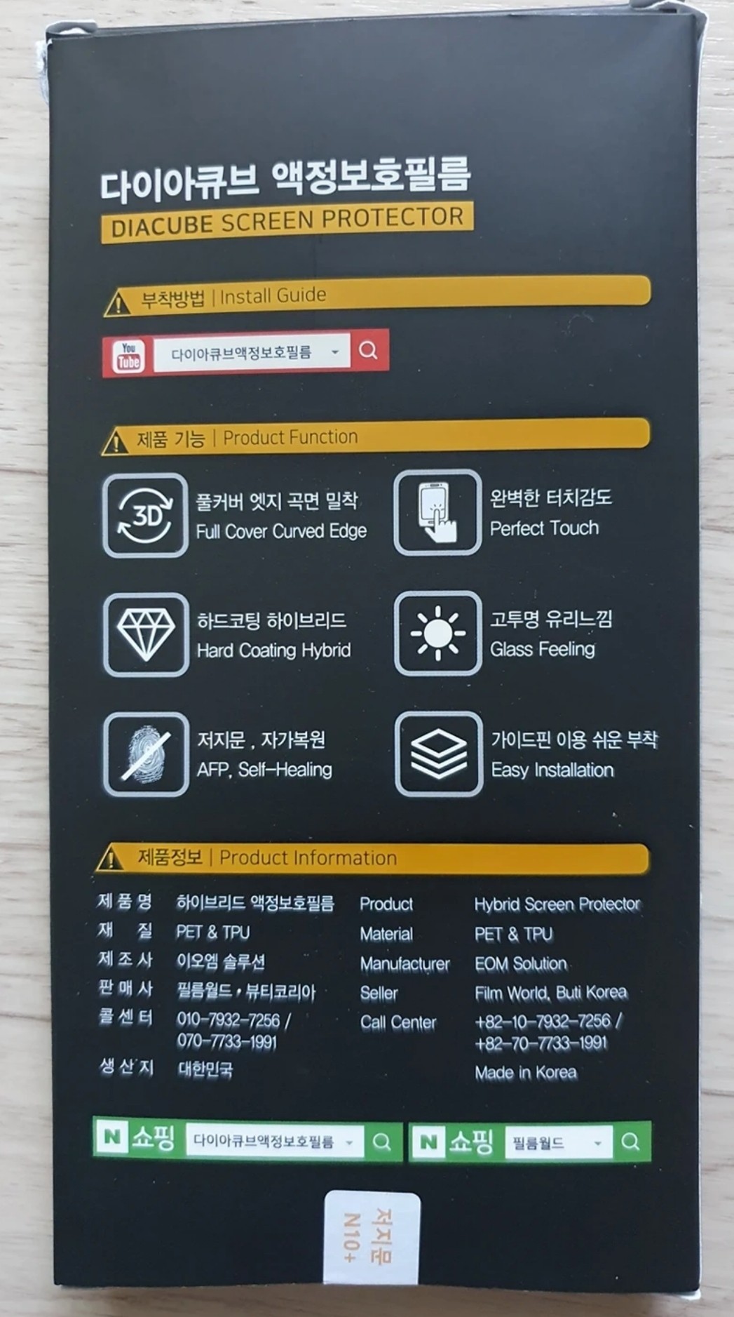 다이아큐브 액정보호필름 노트10+용으로 구매를 했습니다.