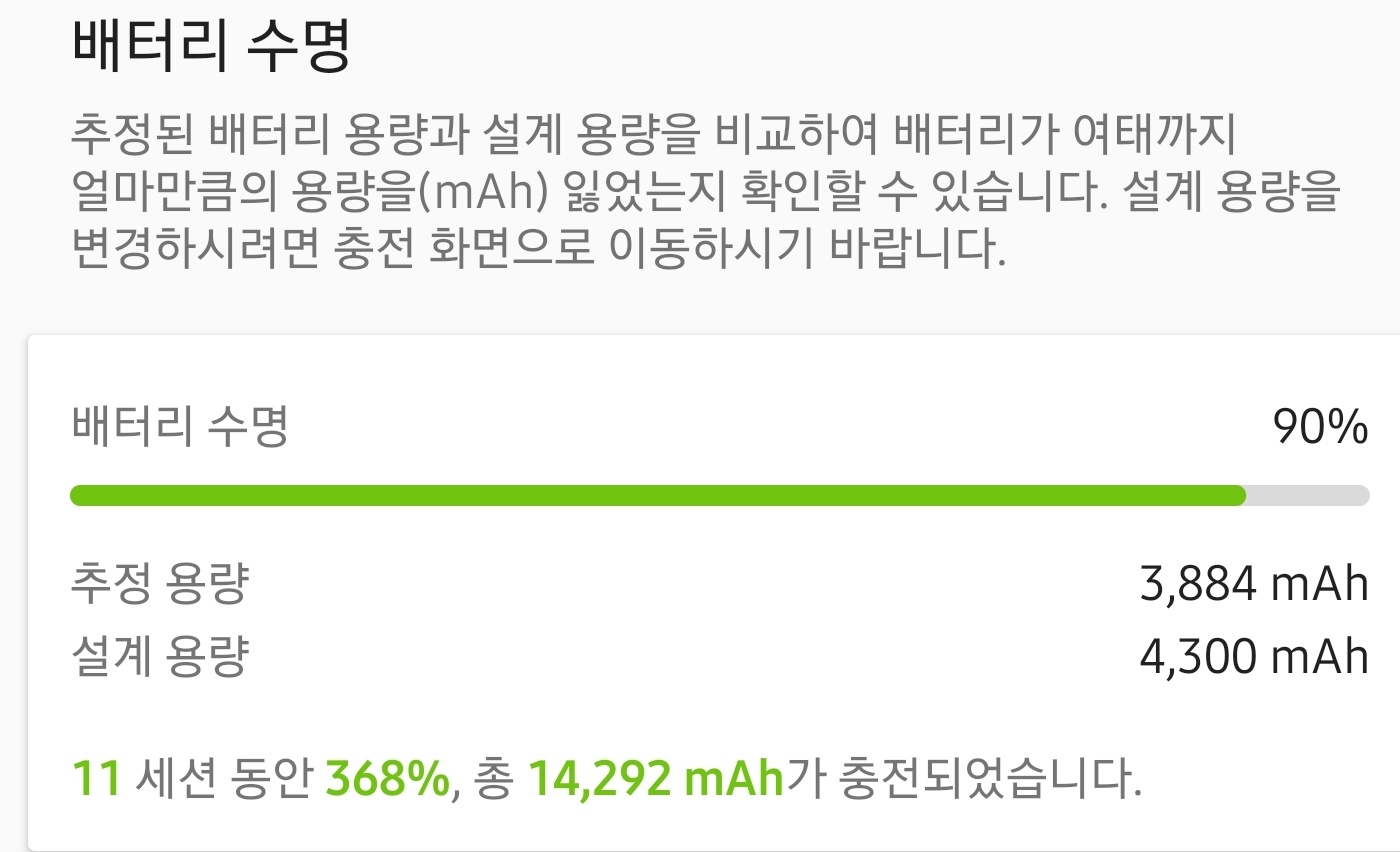 아큐베터리로 일주일정도 써보니 수명이 10%정도 깎였네요.