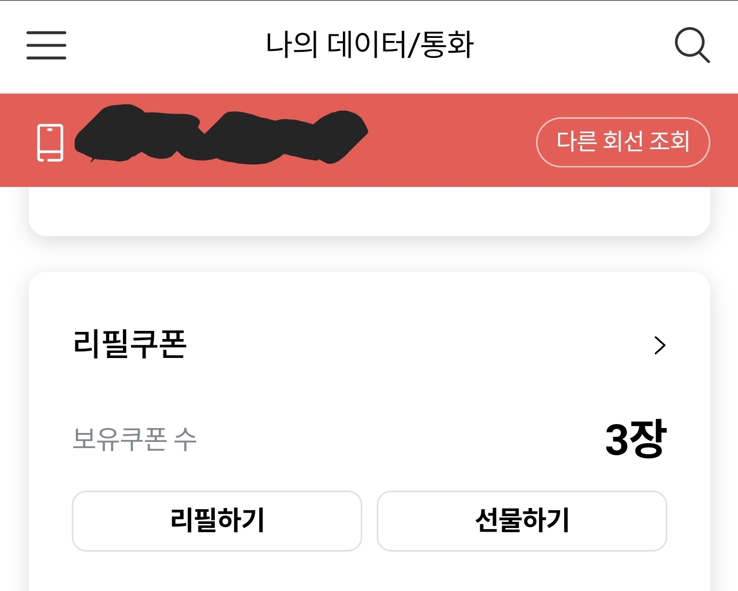 데이터 리필쿠폰을 sk에서 줬더군요.