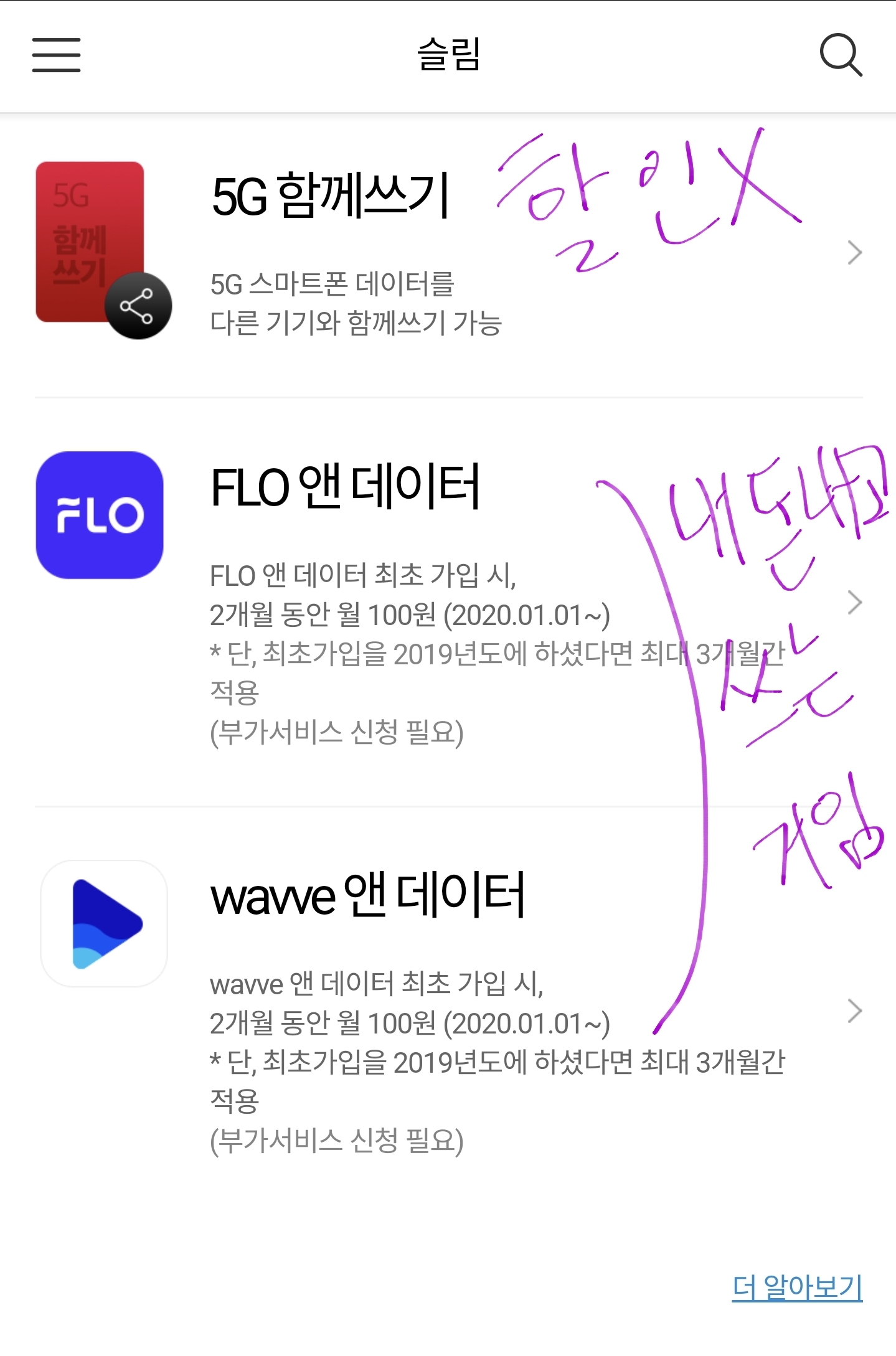 3. 5g데이터 함께쓰기 1대만 무료!