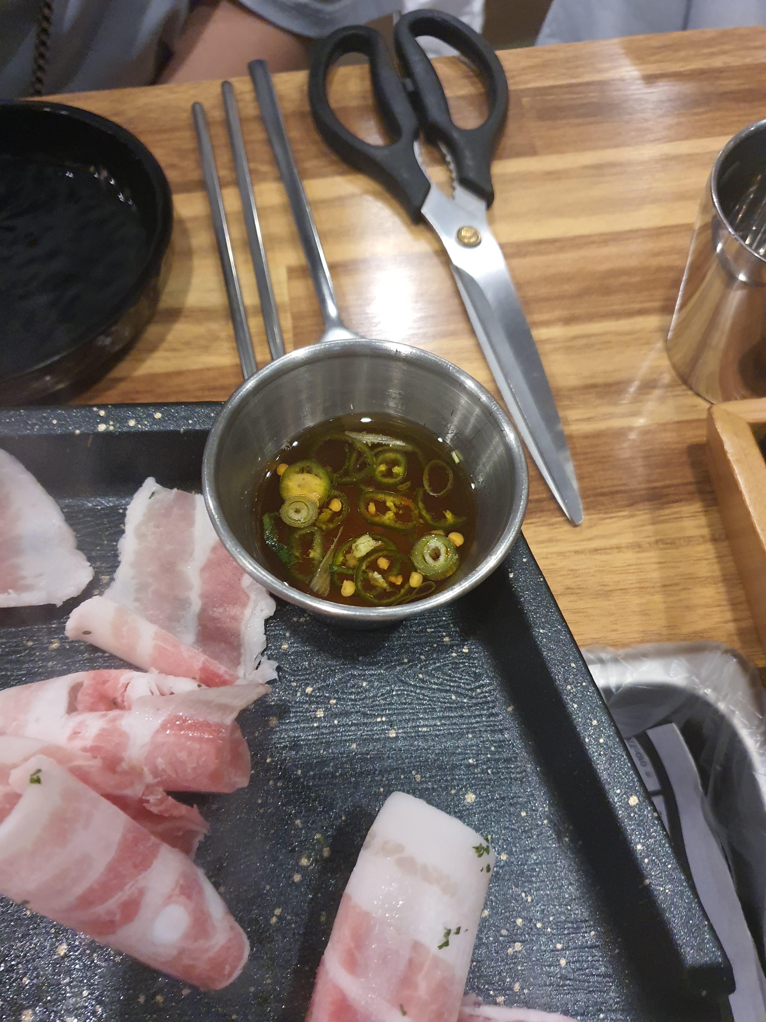 저도 불판위에 있는 맬젓에 찍어서 고기를 먹습니다. ㅎㅎ