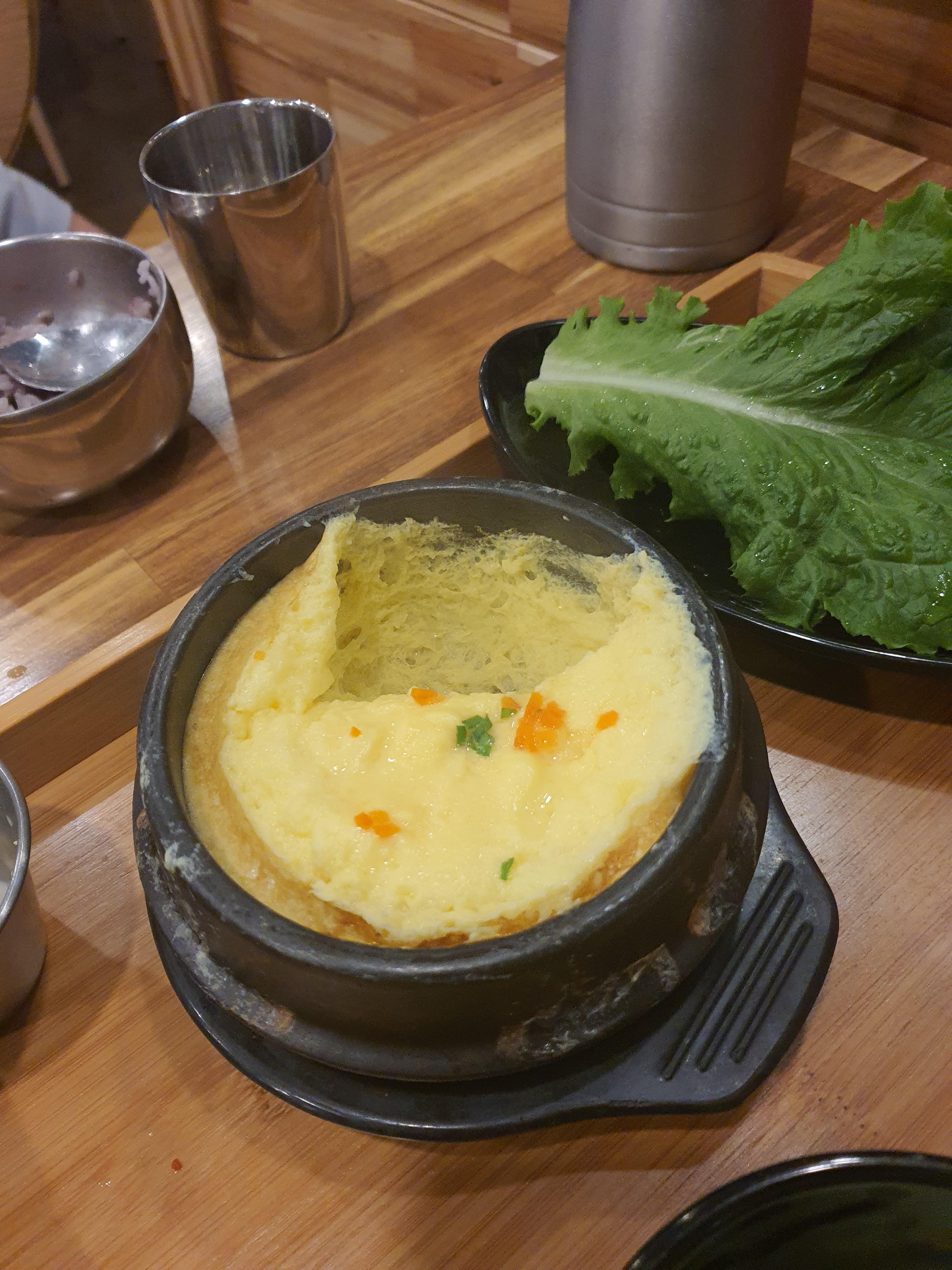 먹는중에 계란찜이 도착 하였습니다.
