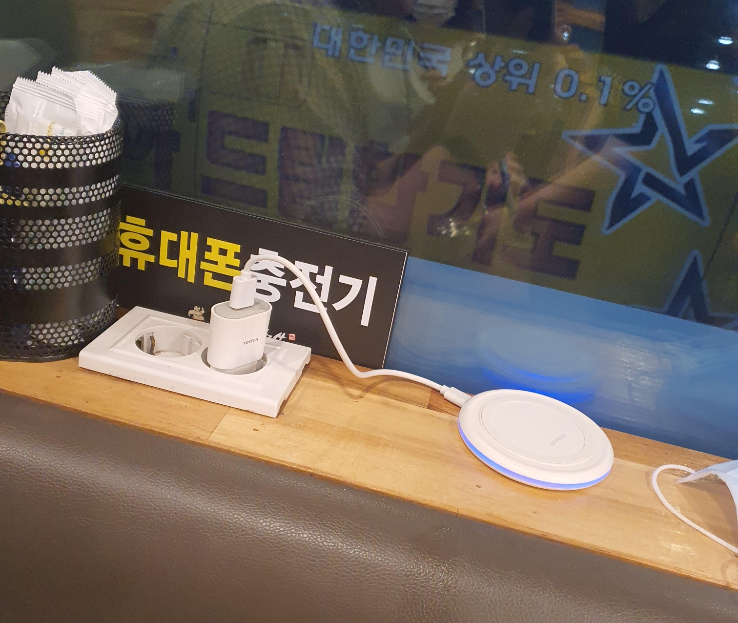 테이블마다 무선충전기가 놓여져 있어서,