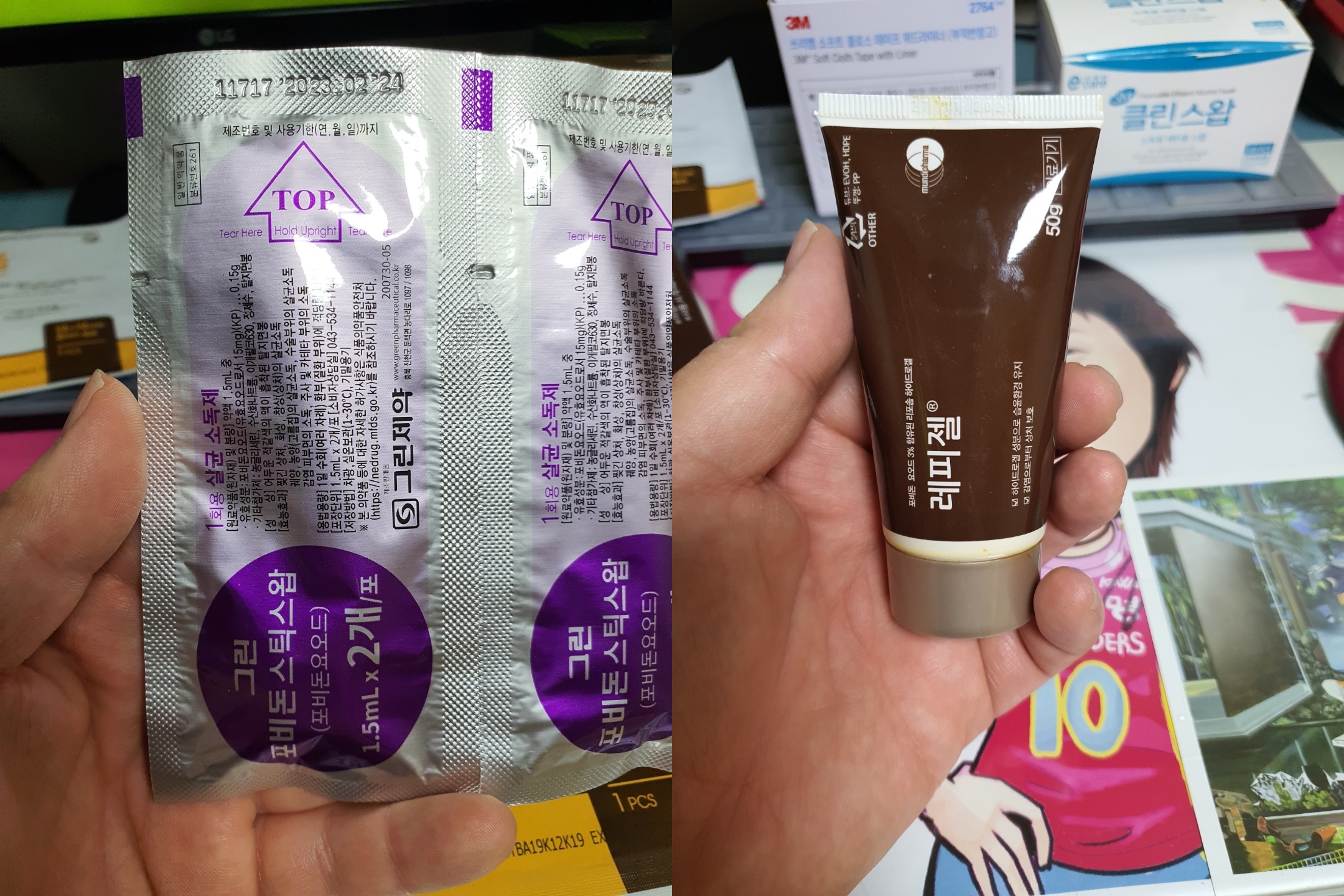 어짜피 둘다 포비돈 소독제로 만들어진 일회용 면봉 소독제이기 때문에 어떤 제품을 사용해도 상관이 없습니다.