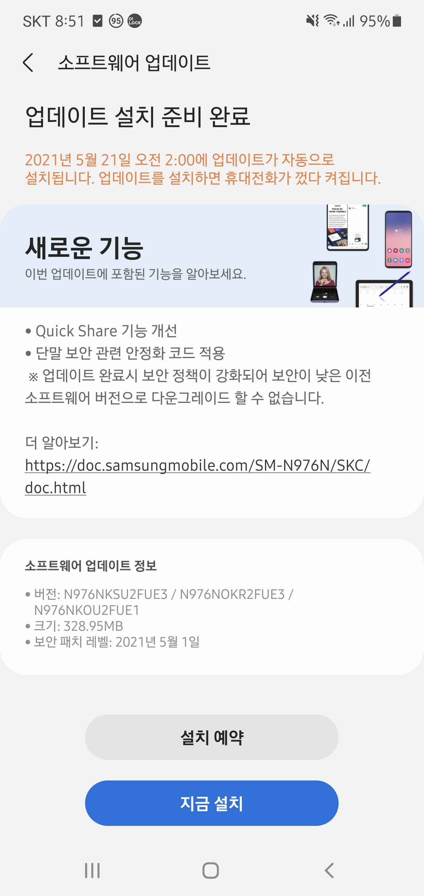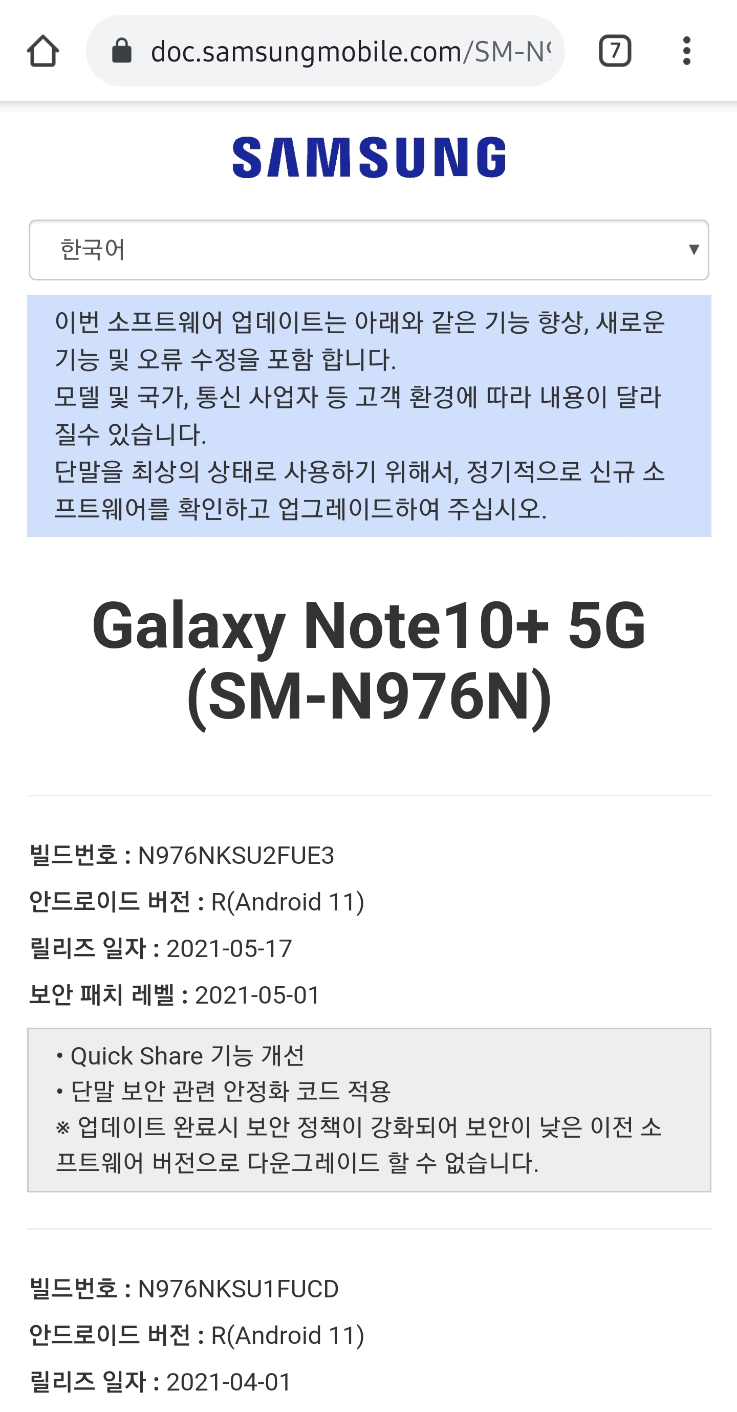 다른건 아니고 보안패치랑 퀵쉐어 기능 업데이트 네요 ㅎㅎ