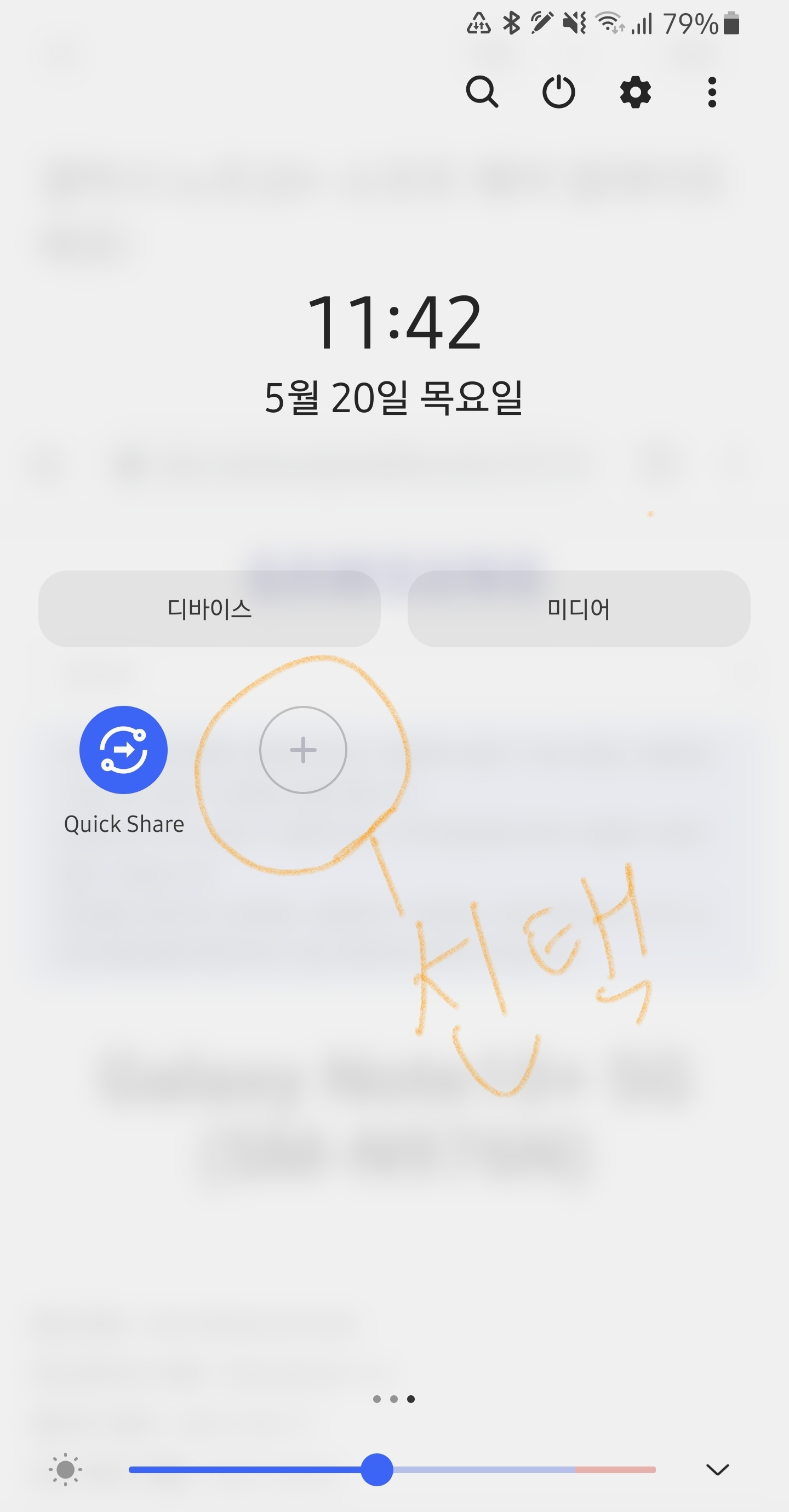 이렇게 한상태에서 퀵쉐어를 누르시면 얘기 파란색 불이 들어오면서 퀵쉐어 기능이 활성화 됩니다. ㅎㅎ