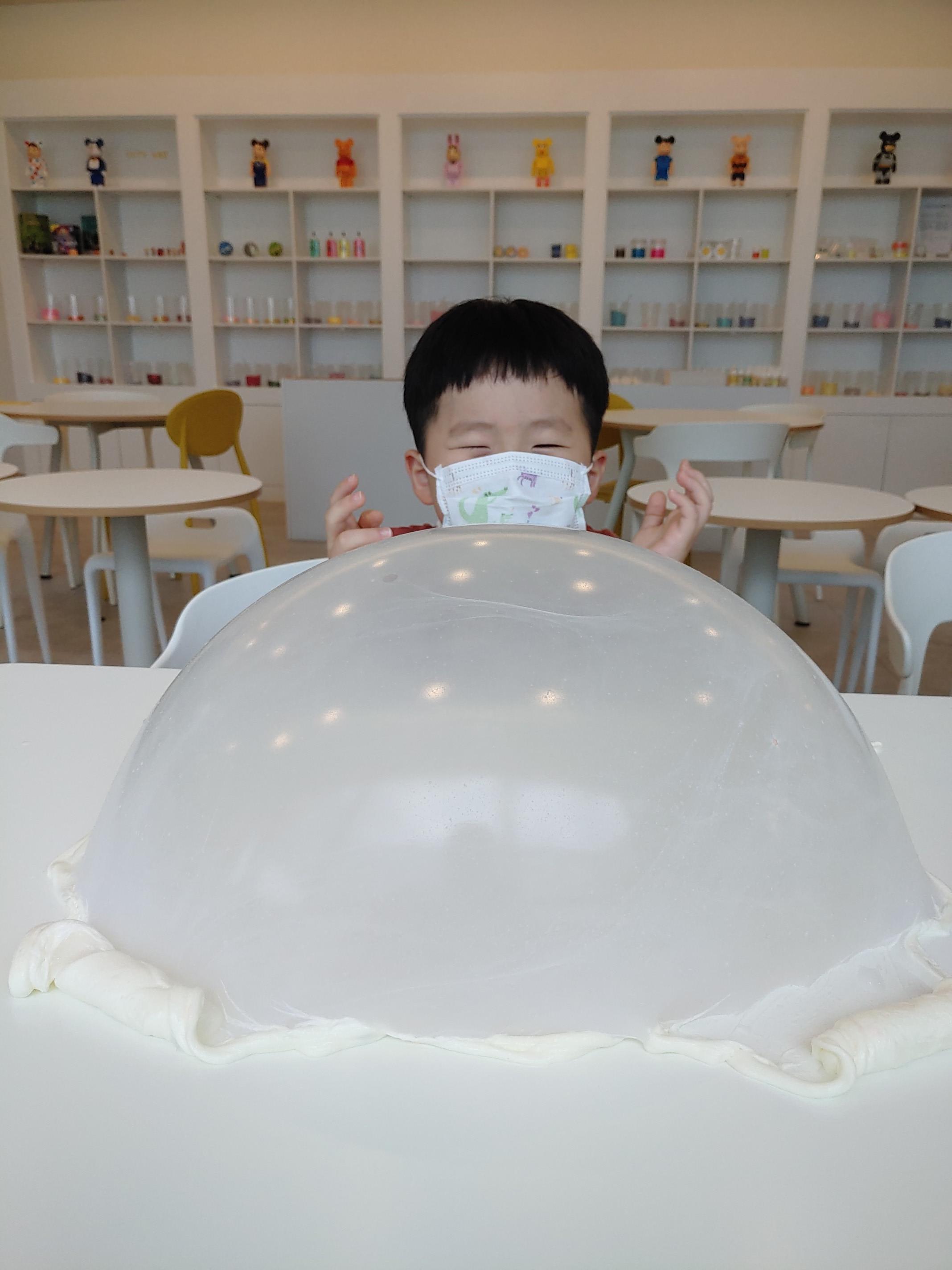 처음 와본 슬라임 카페에서 커다란 슬라임 풍선도 만들고,