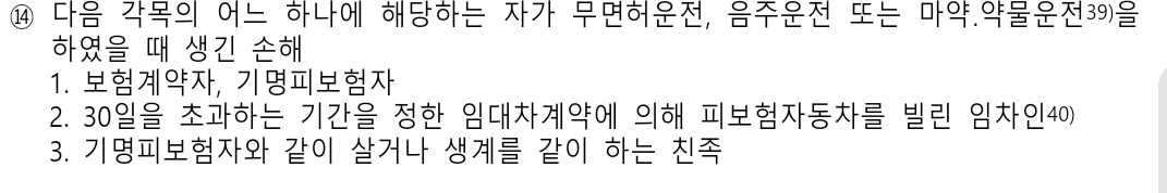 KB손해보험은 12대 중과실중 무면허운전, 음주운전 또는 마약 약물운전을 한경우에는 보험처리를 안해준다는 내용이다.