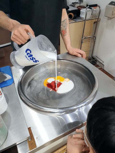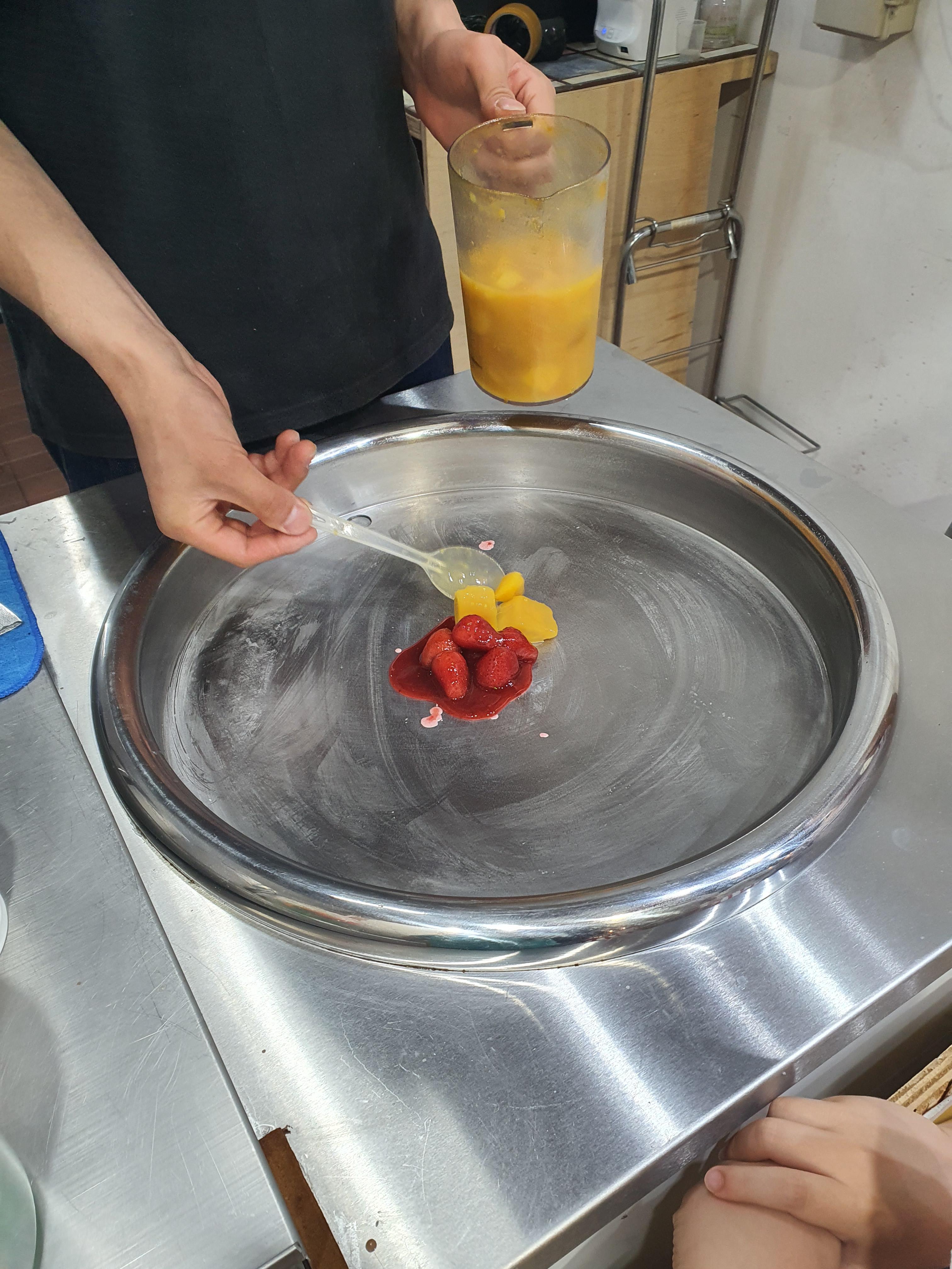 바로 철판아이스크림이 만들어지기 시작합니다.