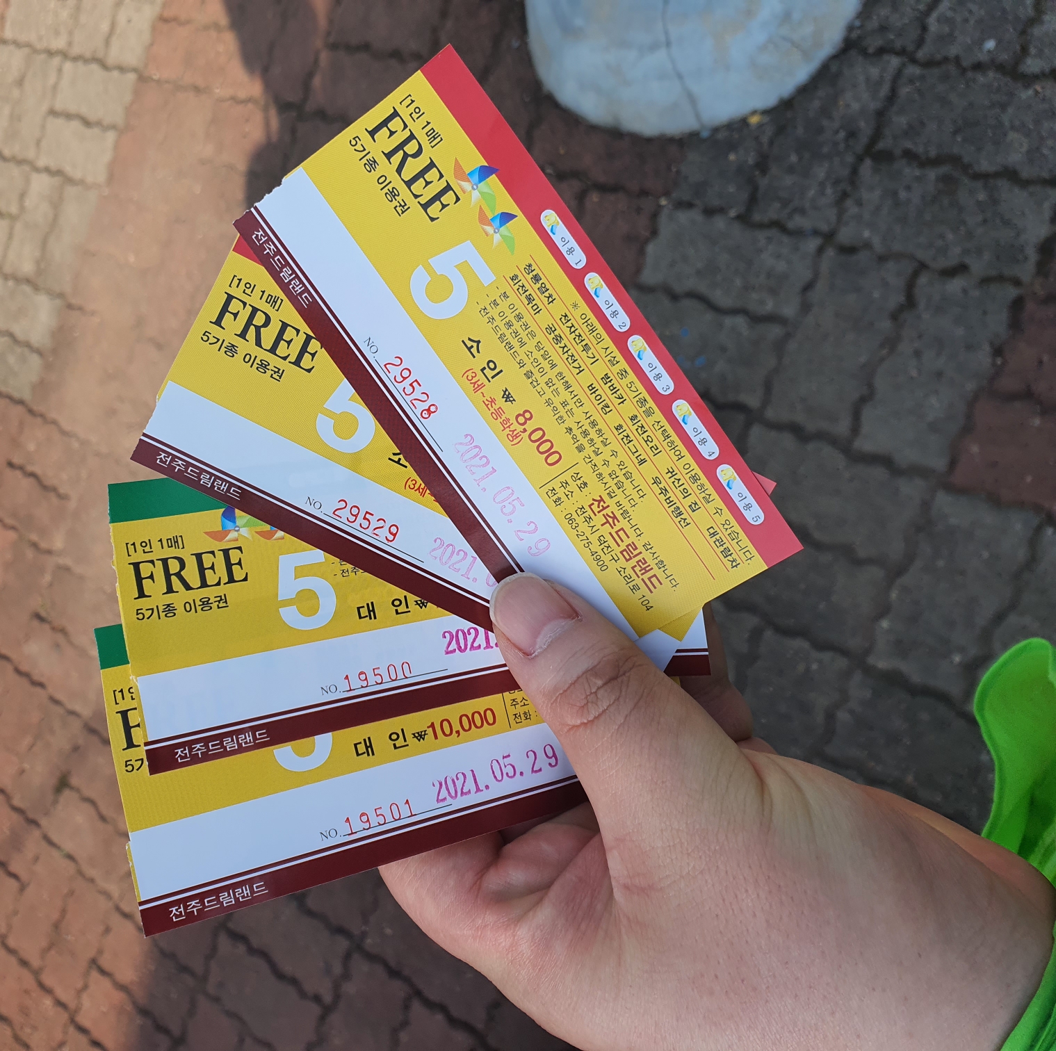 저희도 소인2장 성인 2장 5기종을 끊었습니다.
