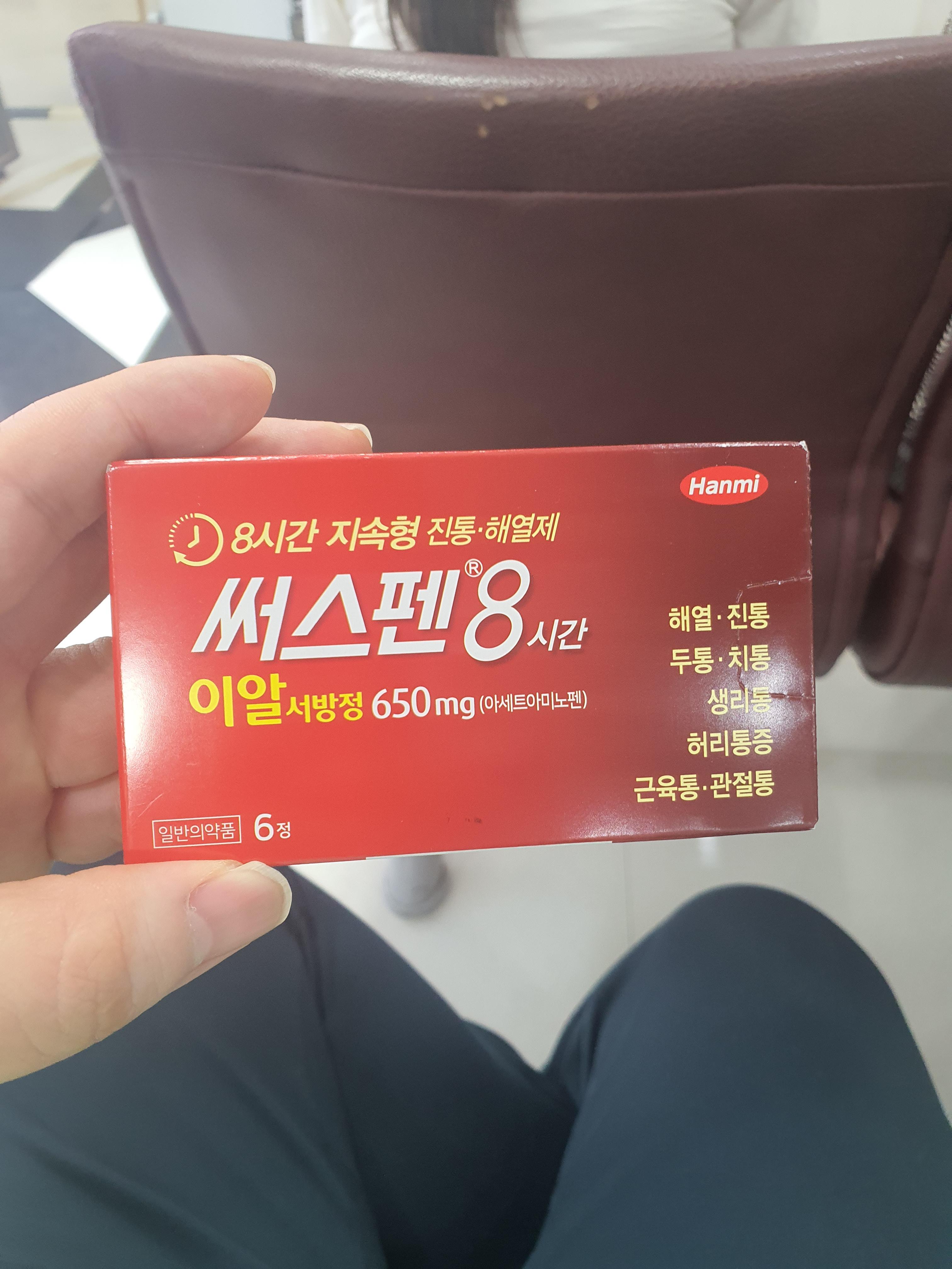 한미약품에서 나온 아세트아미노팬 해열진통제 써스펜 650mg이다.