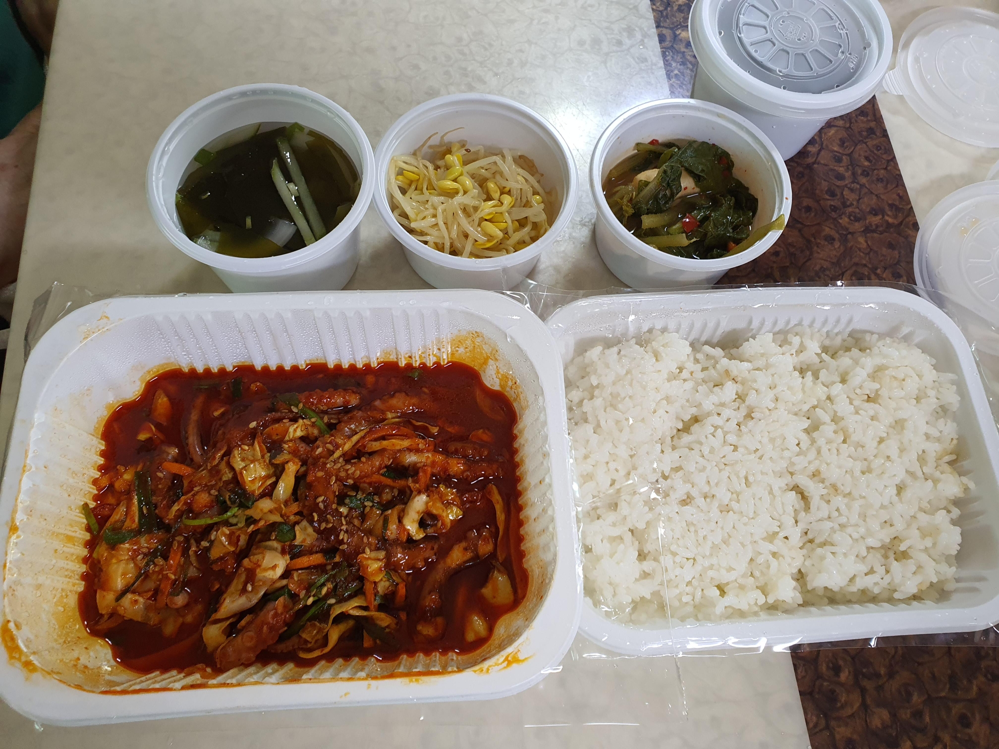 직산 궁낙지보쌈 낙지덮밥 3인분을 포장해 왔어용.
