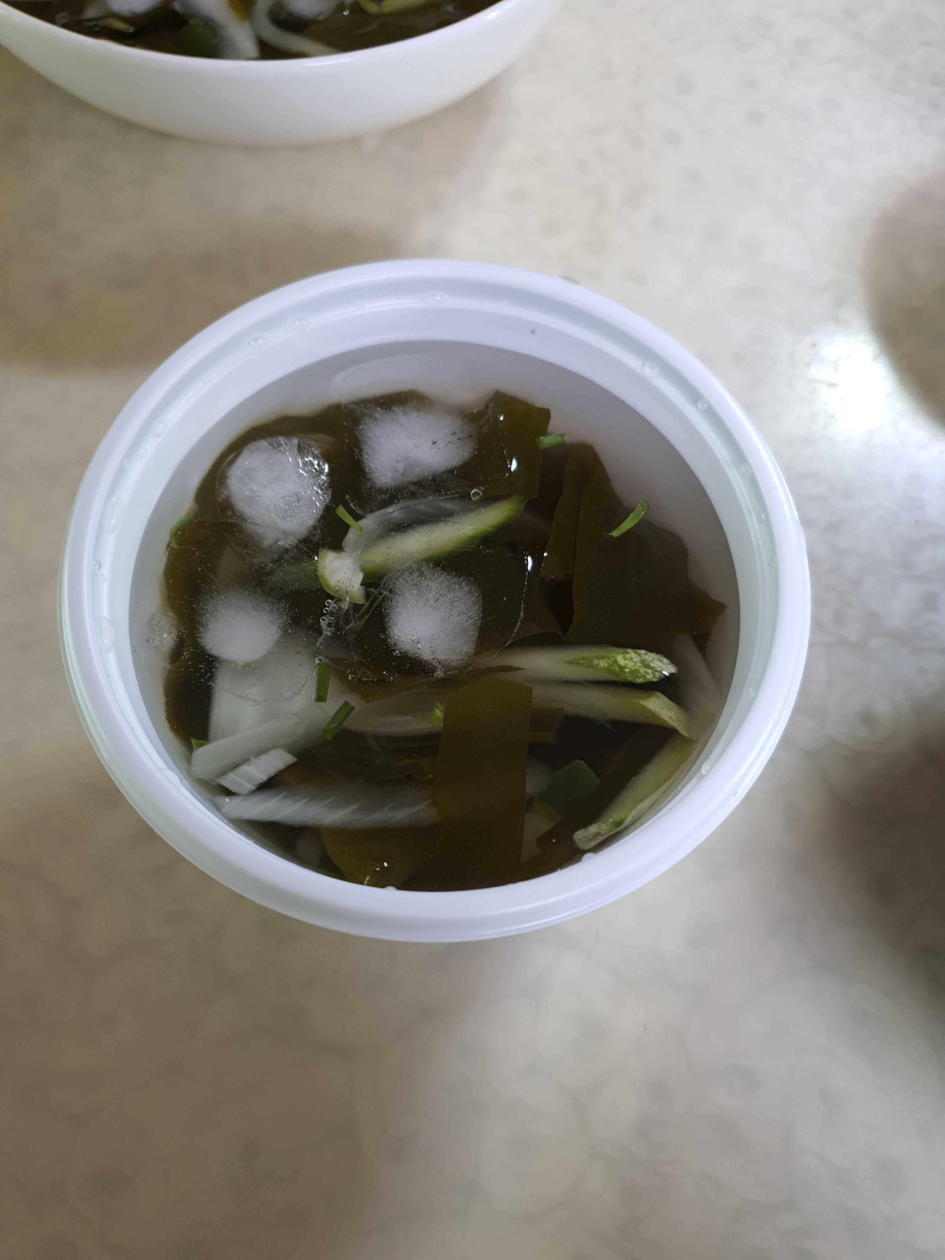 오이냉국은 집에 있는 얼음을 몇개 넣었습니다.