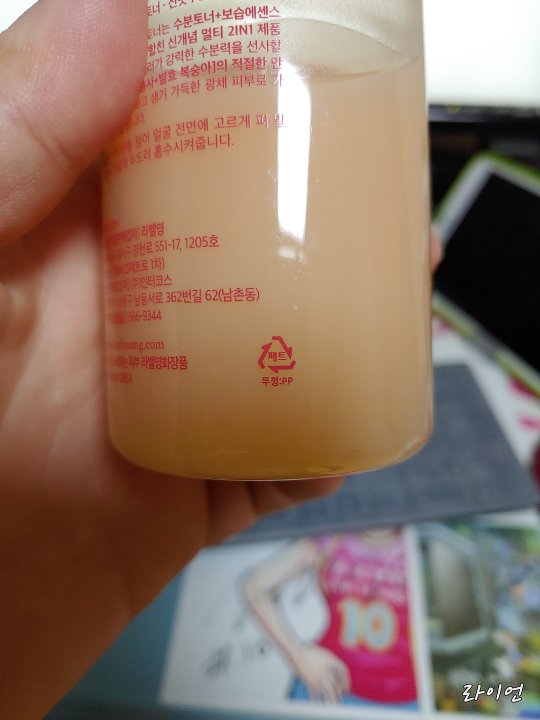 라벨은 PP -> 플라스틱 재활용 바구니 에 넣으시면 됩니다.