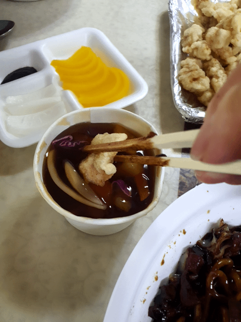 짜장냄새와 탕슉 튀김냄새가 저를 자극합니다. ㅎㅎㅎ